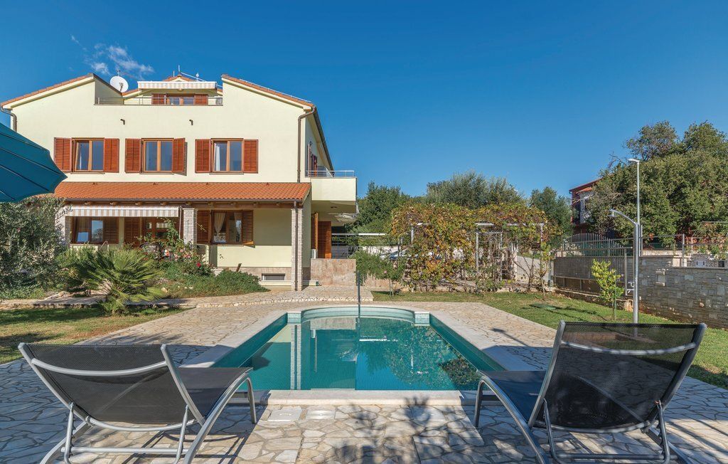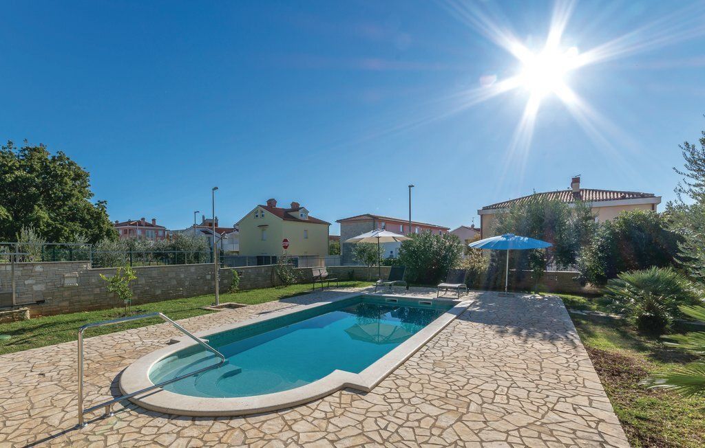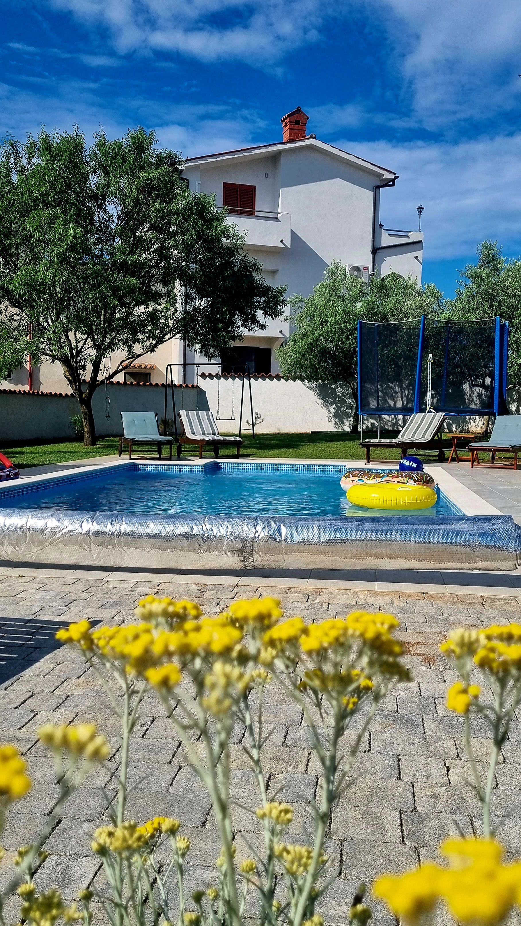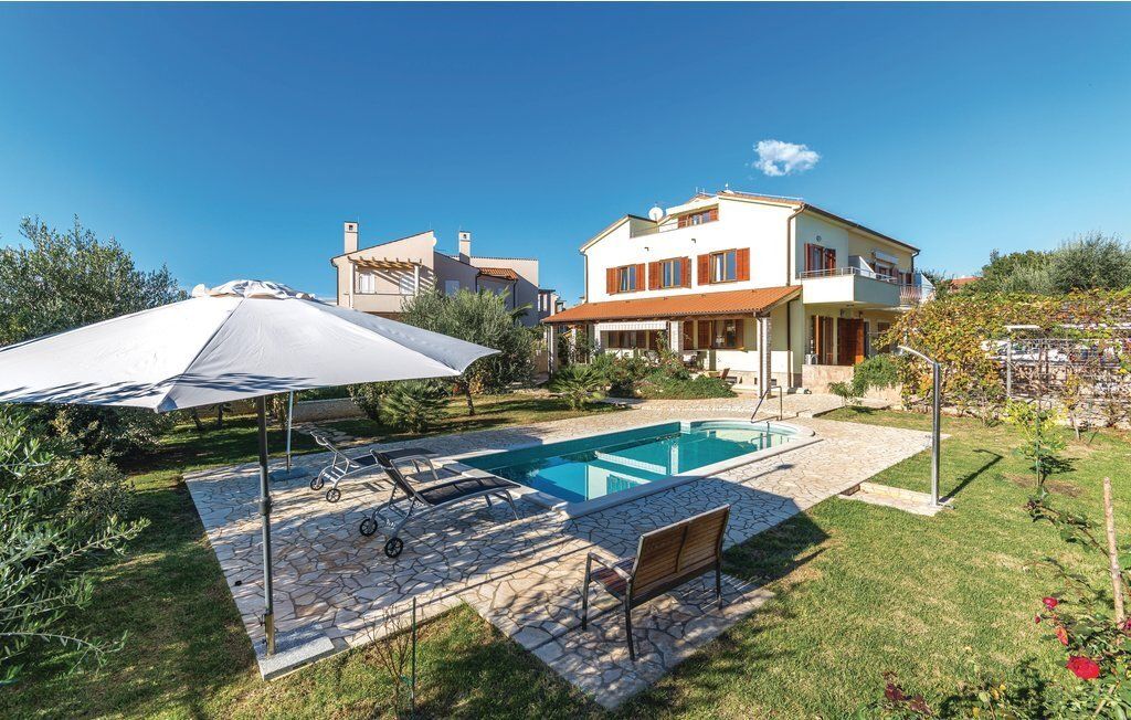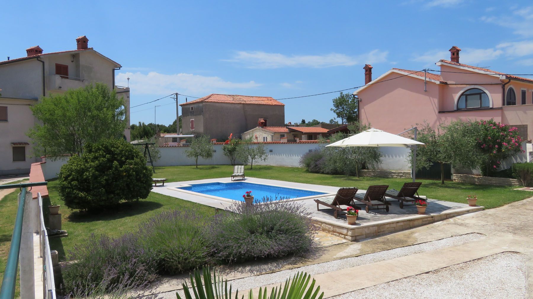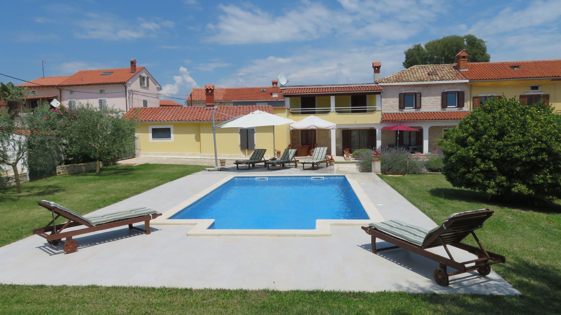 Das großzügige, liebevoll und sehr gut ausgestattete Ferienhaus befindet sich Medulin und geht über 2 Stockwerke. Sie haben hier 3 Schlafzimmer mit Doppelbetten, 2 Badezimmer mit Dusche, einen sehr gut ausgestatteten Küchen- und Wohnbereich, sowie einen Balkon mit Blick aufs Meer. Die Terrasse des Hauses bietet als Highlight den schönen Pool für entspannte Urlaubstage. Der Pool ist ungefähr 3x6m groß.