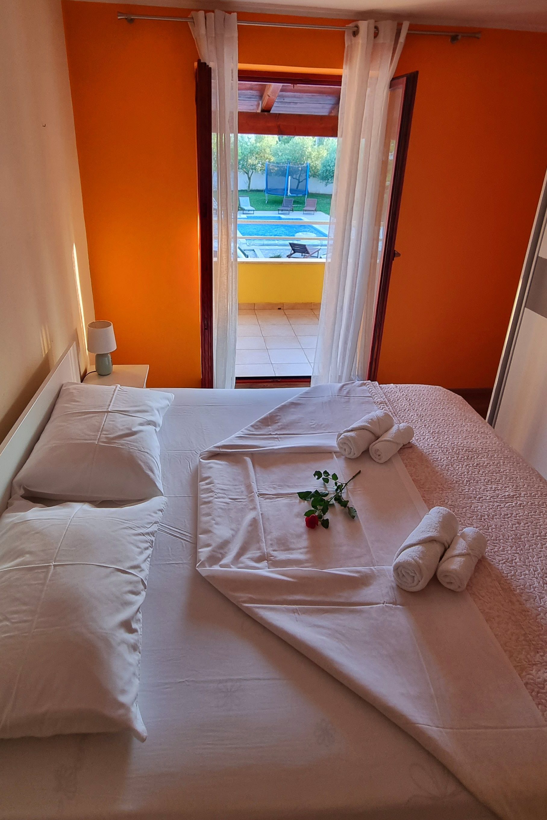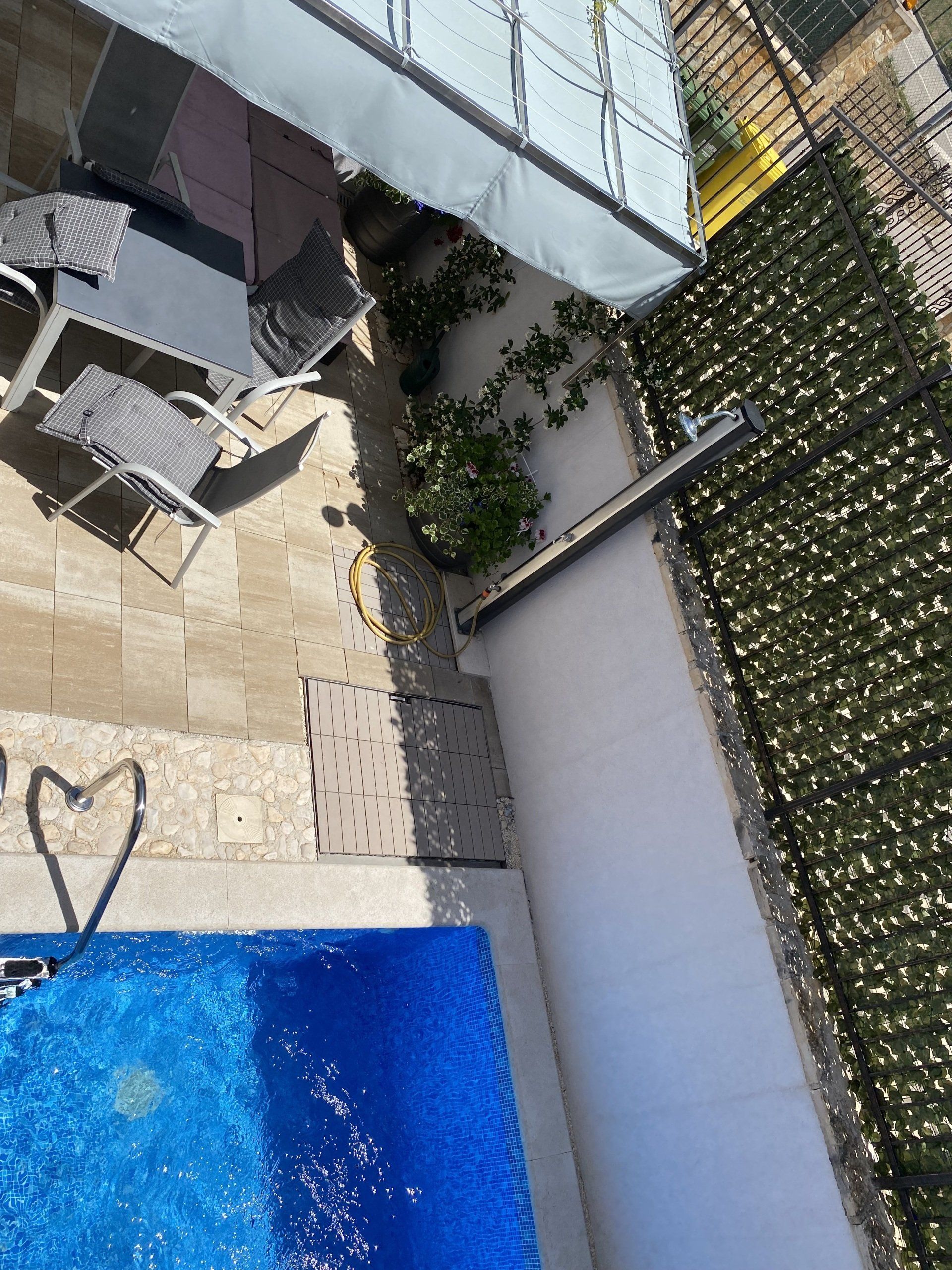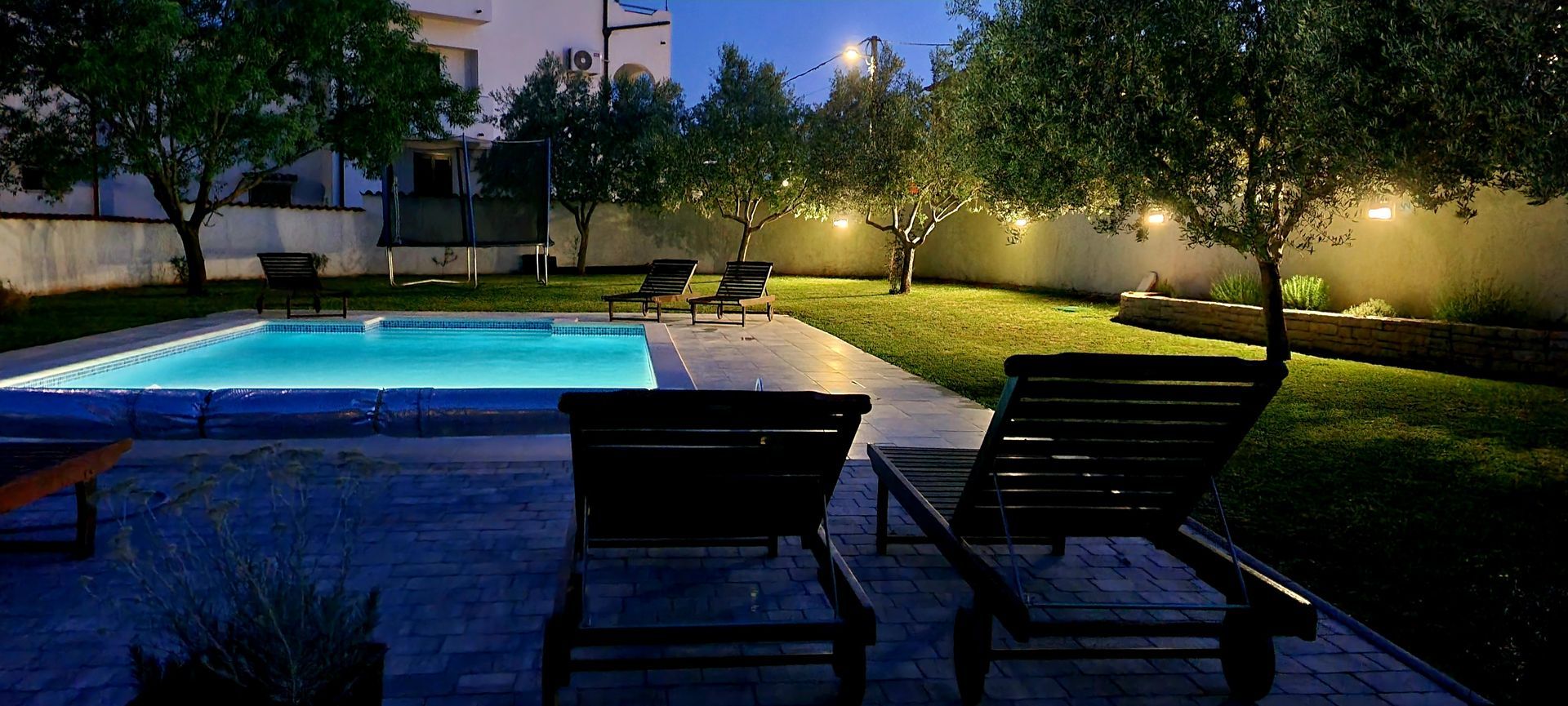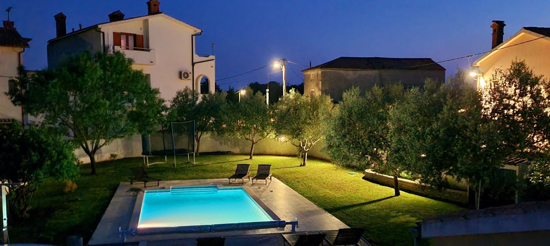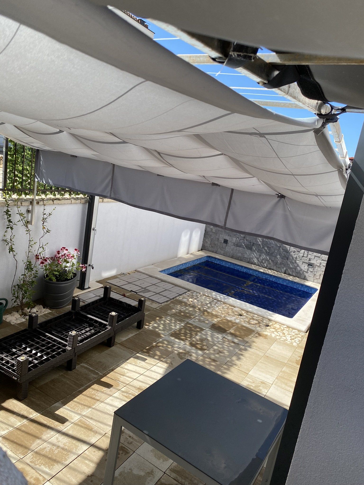 Das großzügige, liebevoll und sehr gut ausgestattete Ferienhaus befindet sich Medulin und geht über 2 Stockwerke. Sie haben hier 3 Schlafzimmer mit Doppelbetten, 2 Badezimmer mit Dusche, einen sehr gut ausgestatteten Küchen- und Wohnbereich, sowie einen Balkon mit Blick aufs Meer. Die Terrasse des Hauses bietet als Highlight den schönen Pool für entspannte Urlaubstage. Der Pool ist ungefähr 3x6m groß.