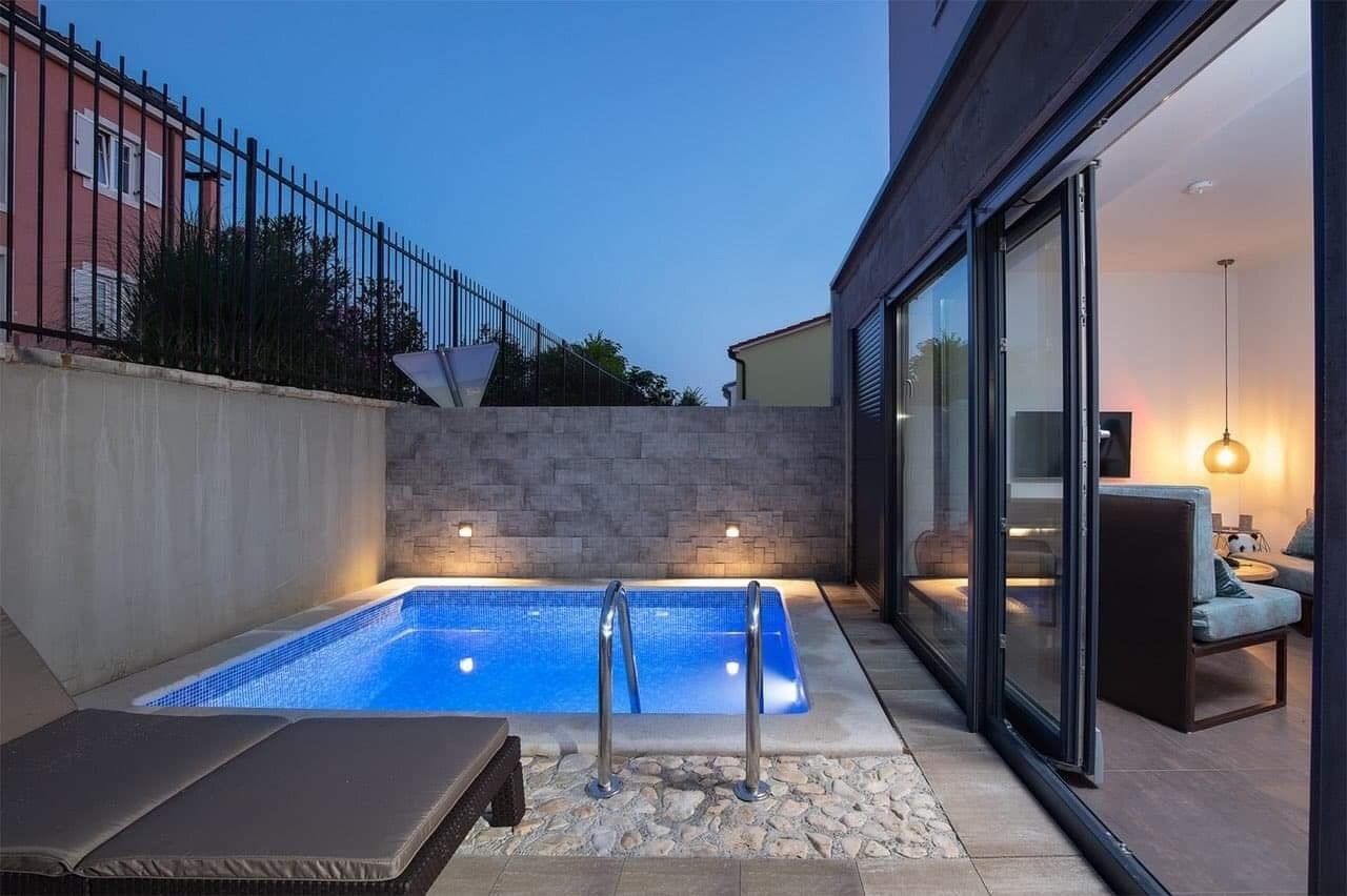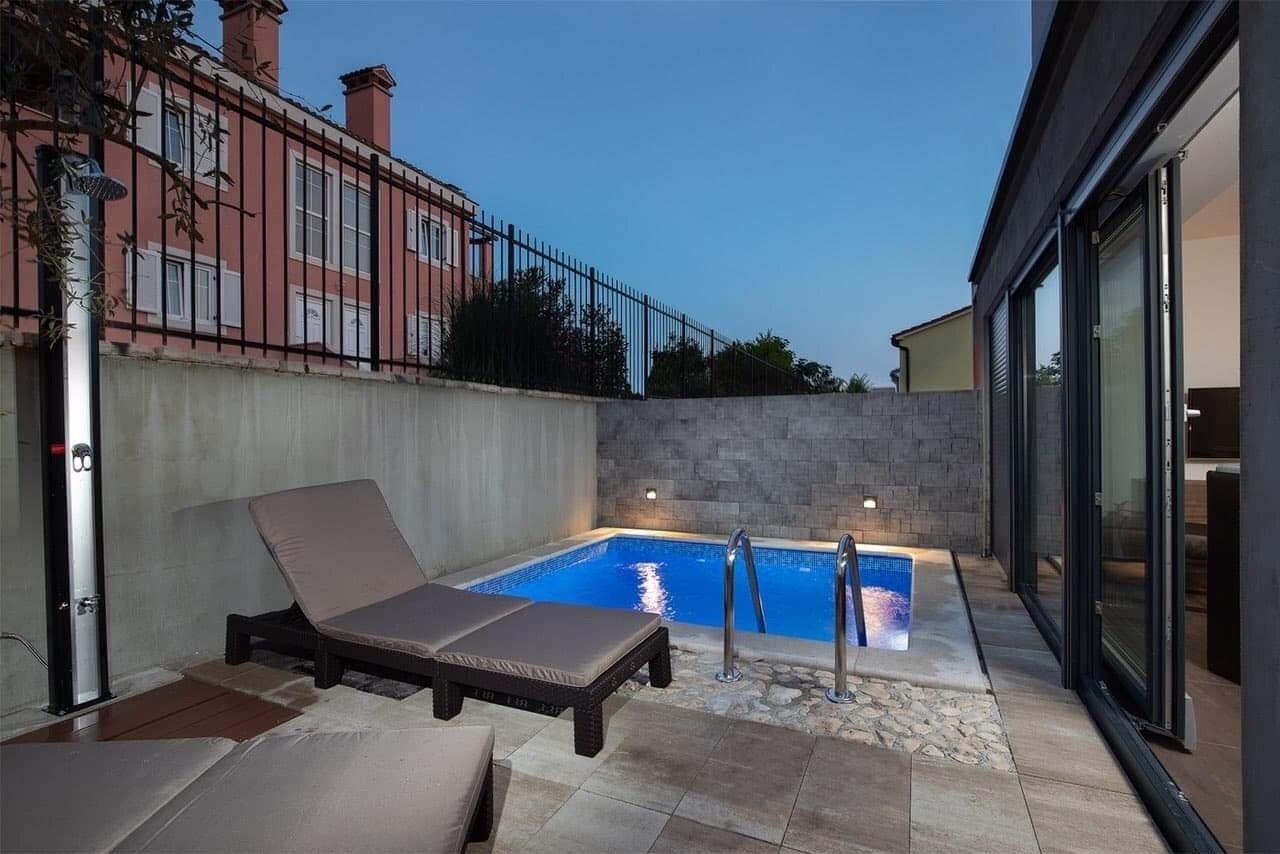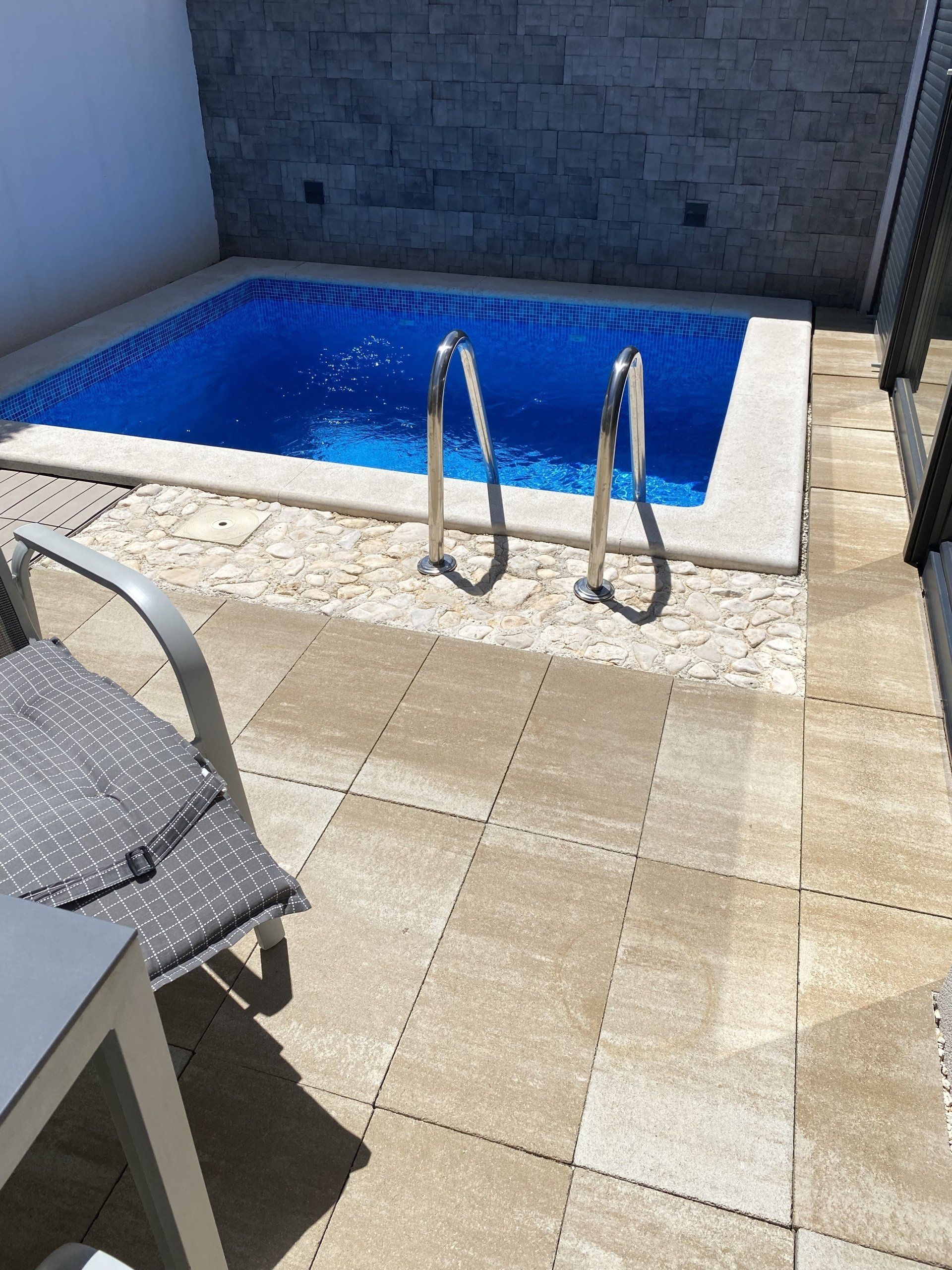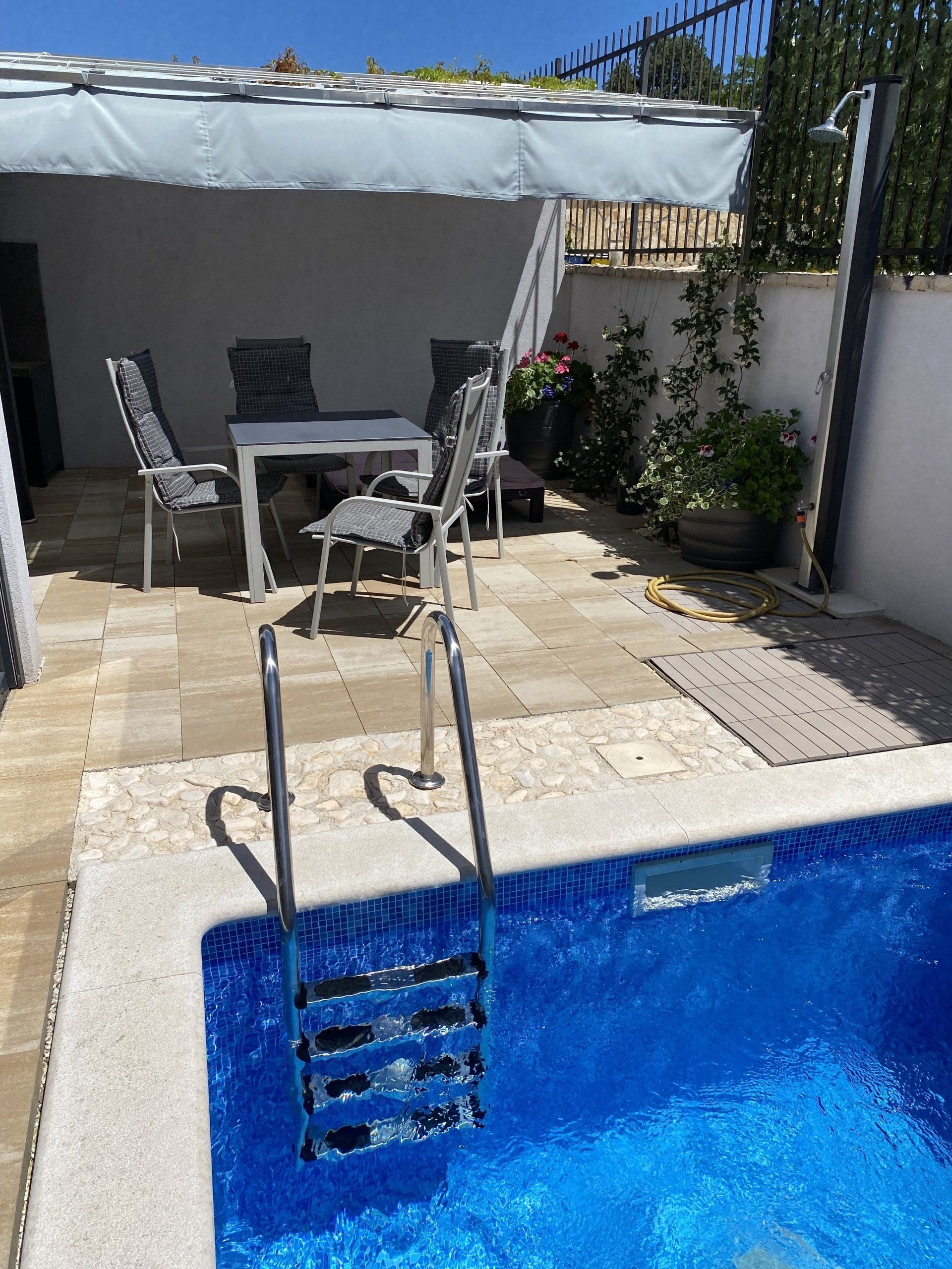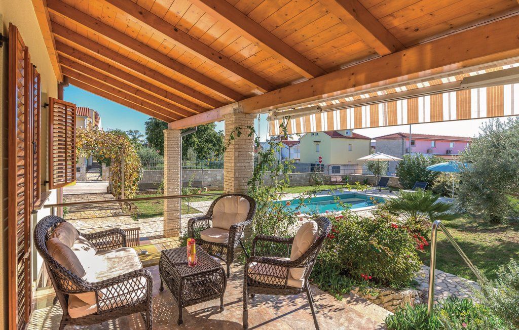 Das großzügige, liebevoll und sehr gut ausgestattete Ferienhaus befindet sich Medulin und geht über 2 Stockwerke. Sie haben hier 3 Schlafzimmer mit Doppelbetten, 2 Badezimmer mit Dusche, einen sehr gut ausgestatteten Küchen- und Wohnbereich, sowie einen Balkon mit Blick aufs Meer. Die Terrasse des Hauses bietet als Highlight den schönen Pool für entspannte Urlaubstage. Der Pool ist ungefähr 3x6m groß.