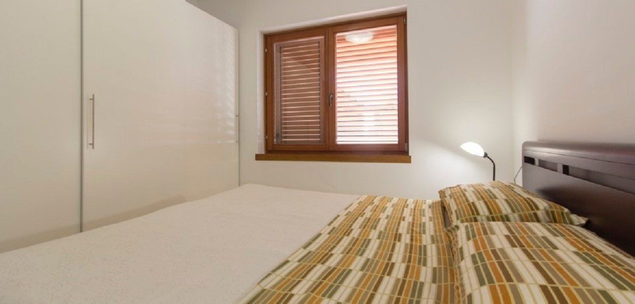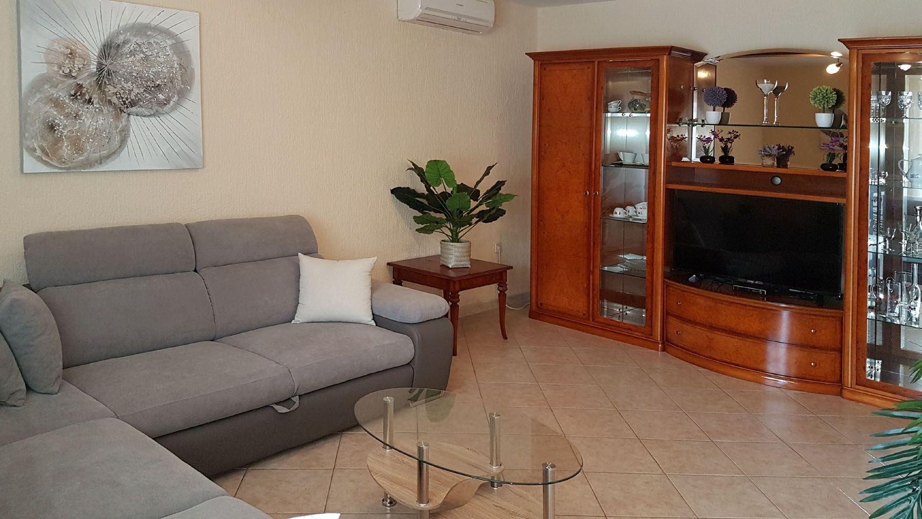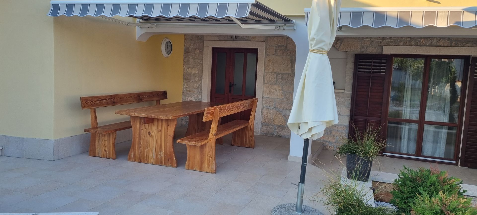 Das Apartment befindet sich im Erdgeschoss des Hauses. Sie haben hier zwei große Schlafzimmer mit Doppelbetten, ein Badezimmer mit einer Dusche, ein Wohnzimmer mit einer Schlafcouch und einer Küchenzeile mit einer Spülmachine. Eine schöne große Terrasse gehört mit dazu.