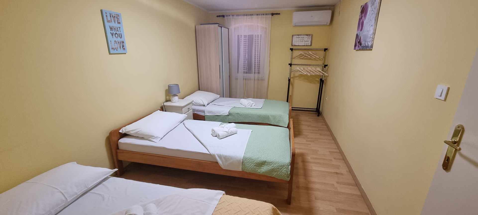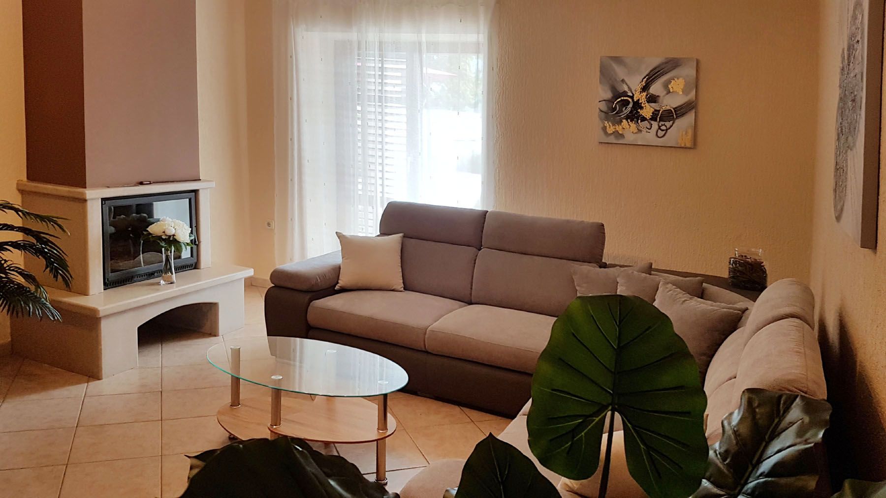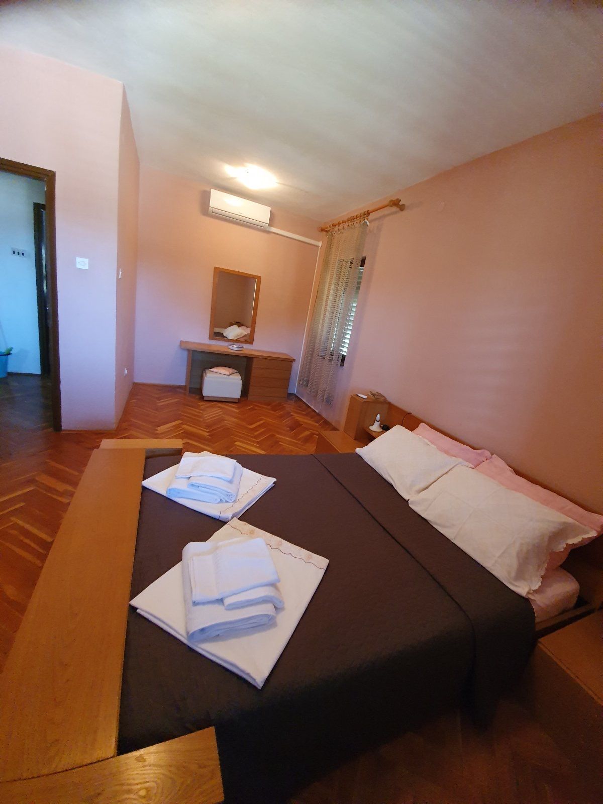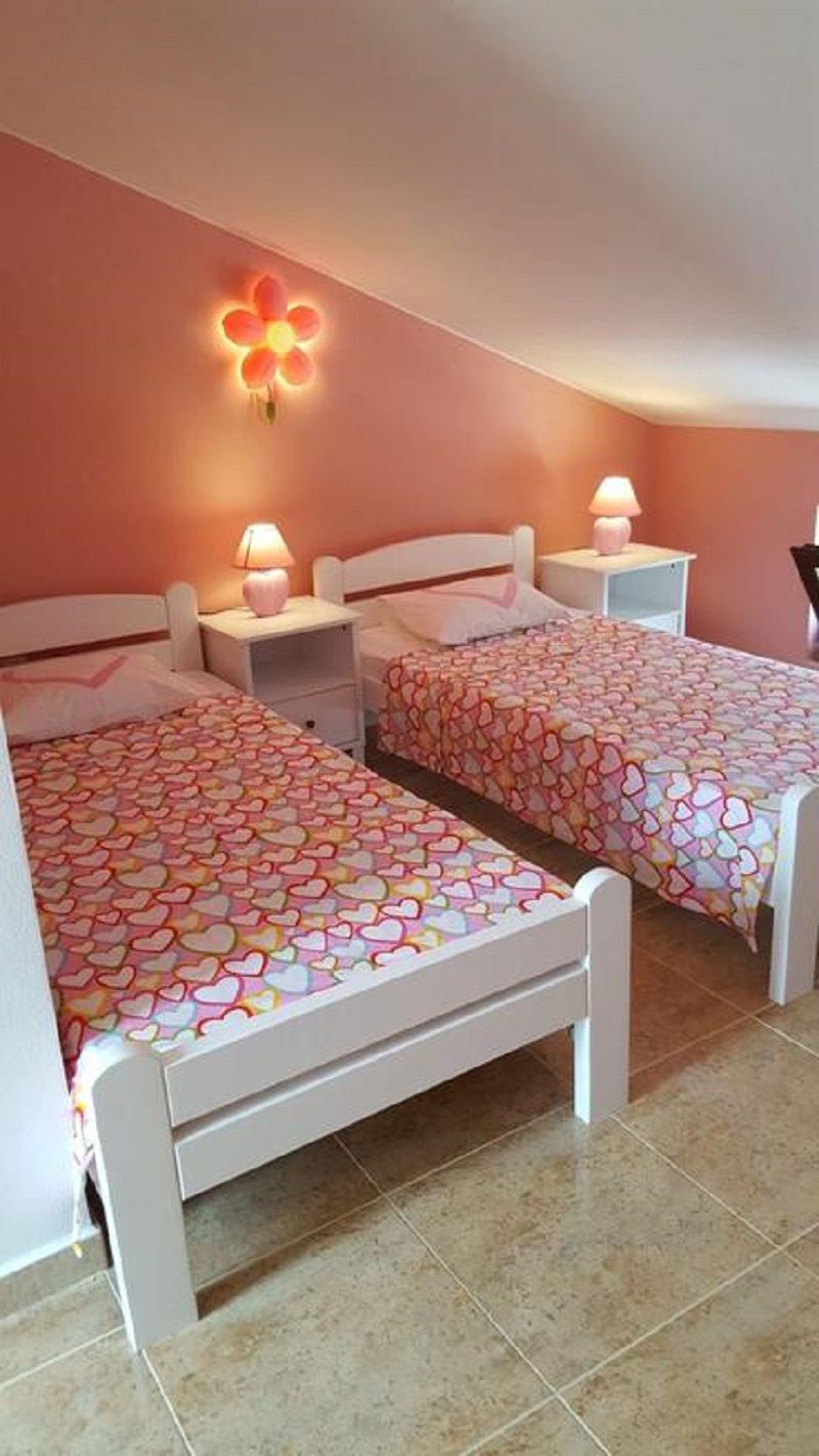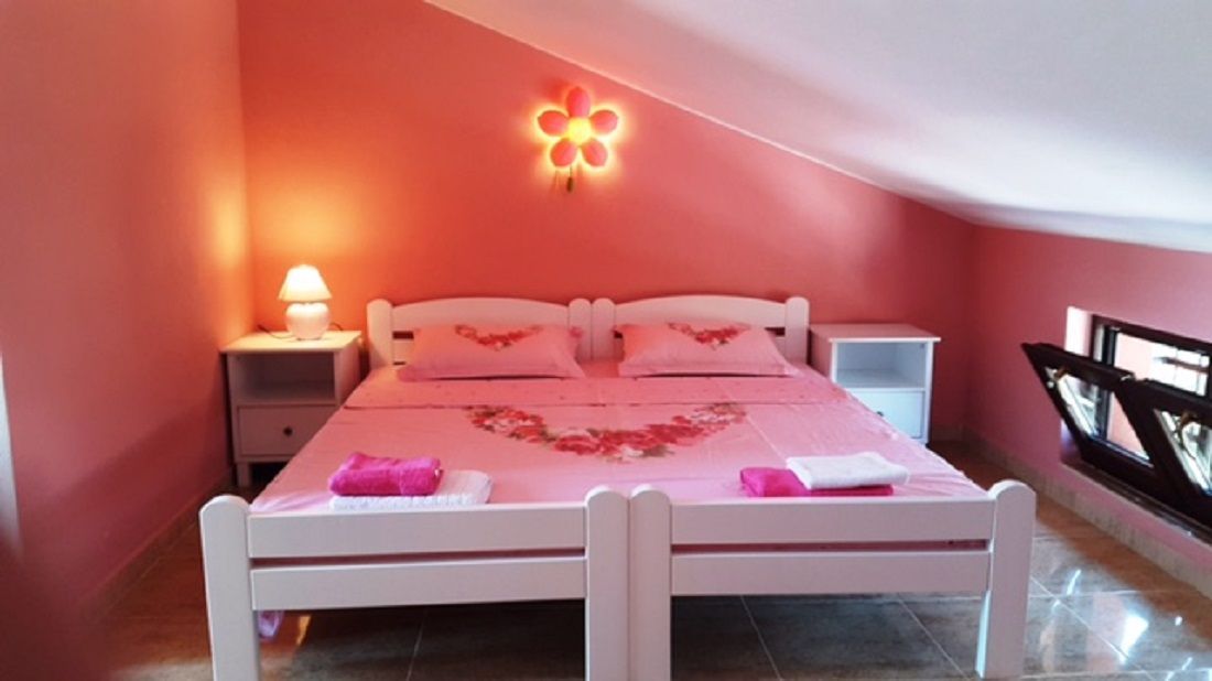 Das großzügige Ferienhaus hat zwei sehr schöne Apartments, die identisch ausgestattet sind. Das Haus liegt ca. 150 m vom Strand in Posesi entfernt. Die Apartment`s liegen im Obergeschoss des Hauses und gehen jeweils über zwei Stockwerke. Sie haben hier in jedem Stockwerk ein Schlafzimmer mit großen Doppelbetten. Im oberen Schlafzimmer steht zusätzlich noch ein Einzelbett. Ein Badezimmer mit Dusche befindet sich in jedem Stockwerk. Alle Stockwerke sind mit einer Klimaanlage ausgestattet. Sie haben hier eine wunderschöne Dachterrasse. Auf der im ersten Stock befindlichen Terrasse des Apartments können Sie gemütlich frühstücken. Das Haus hat eine schöne Küche und einen Wohnbereich mit einer Schlafcouch. Im großen Garten können Sie grillen und bei den Feigenbäumen den Abend genießen. Parken können Sie direkt in der großen Wiese des Hauses.