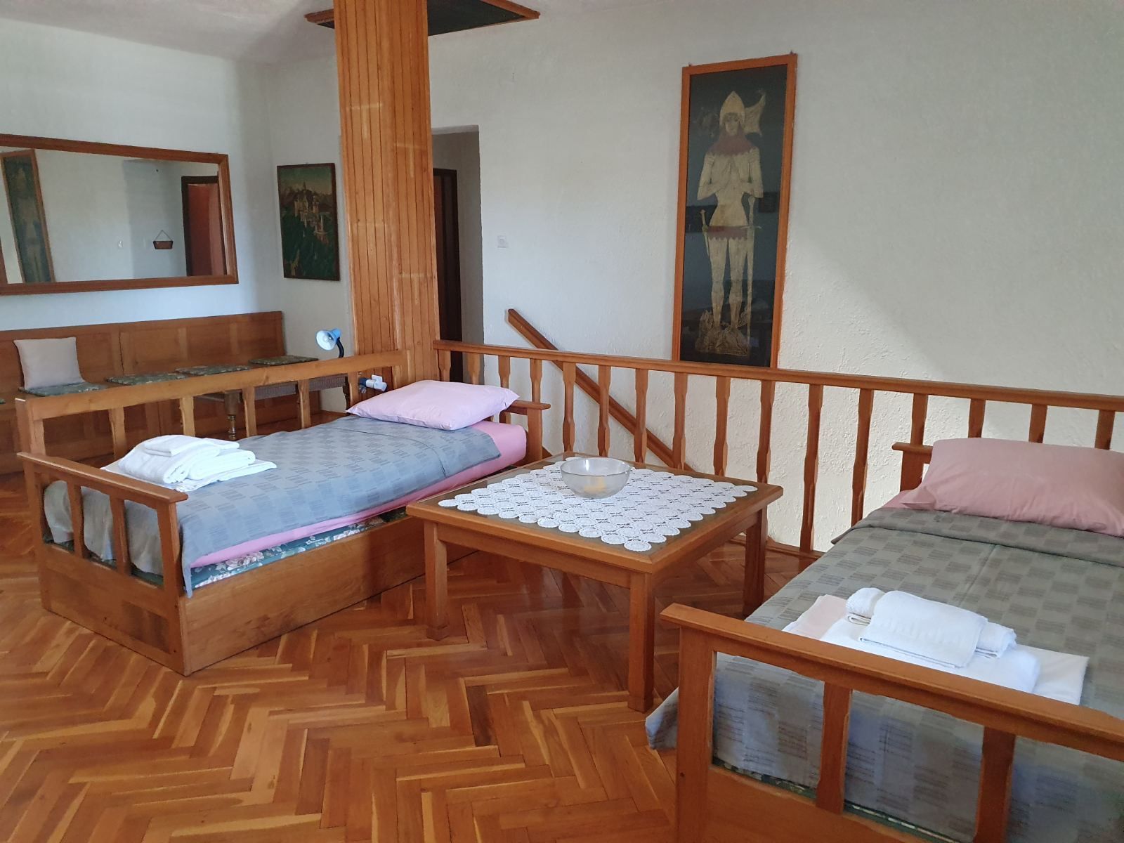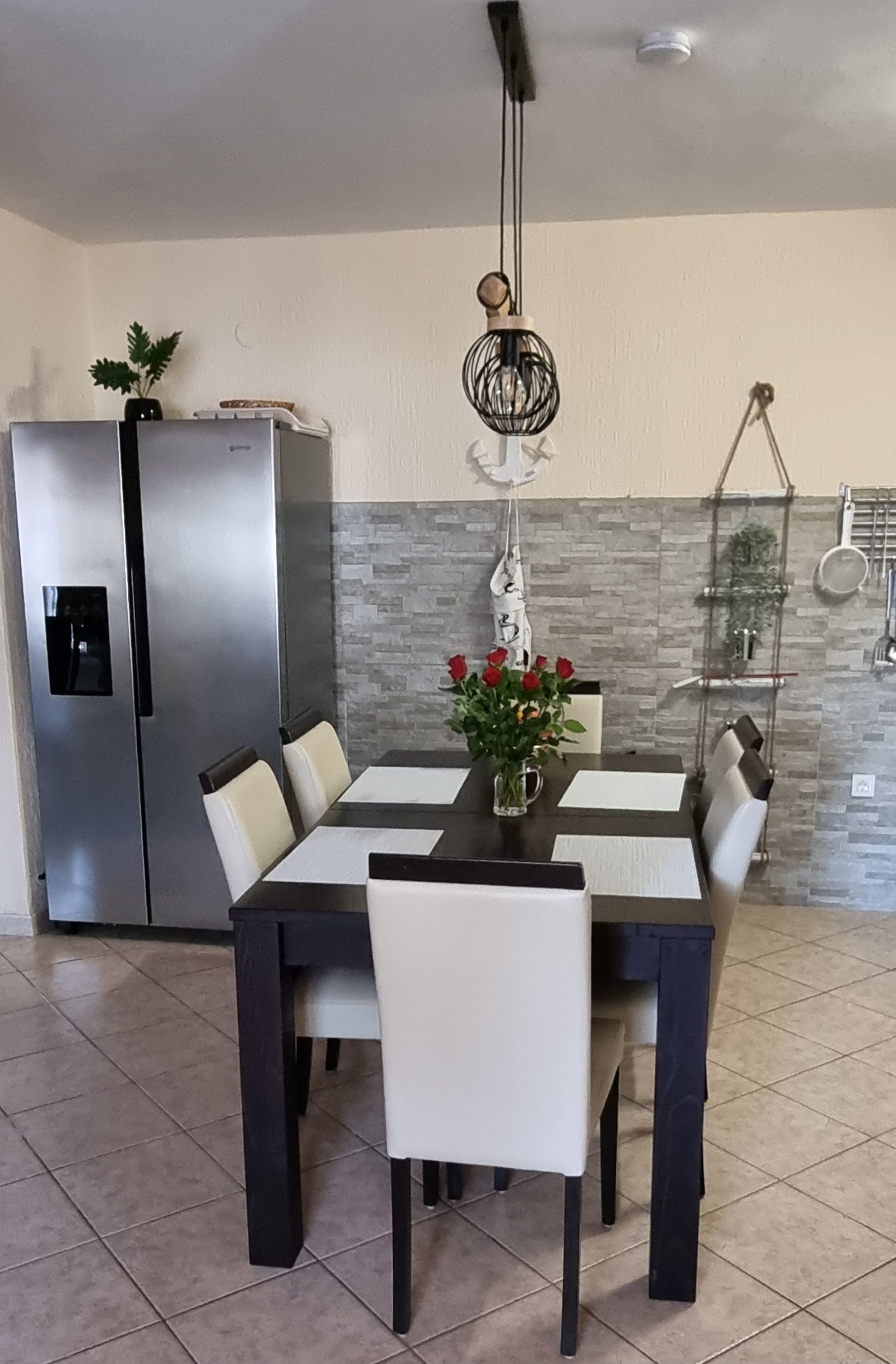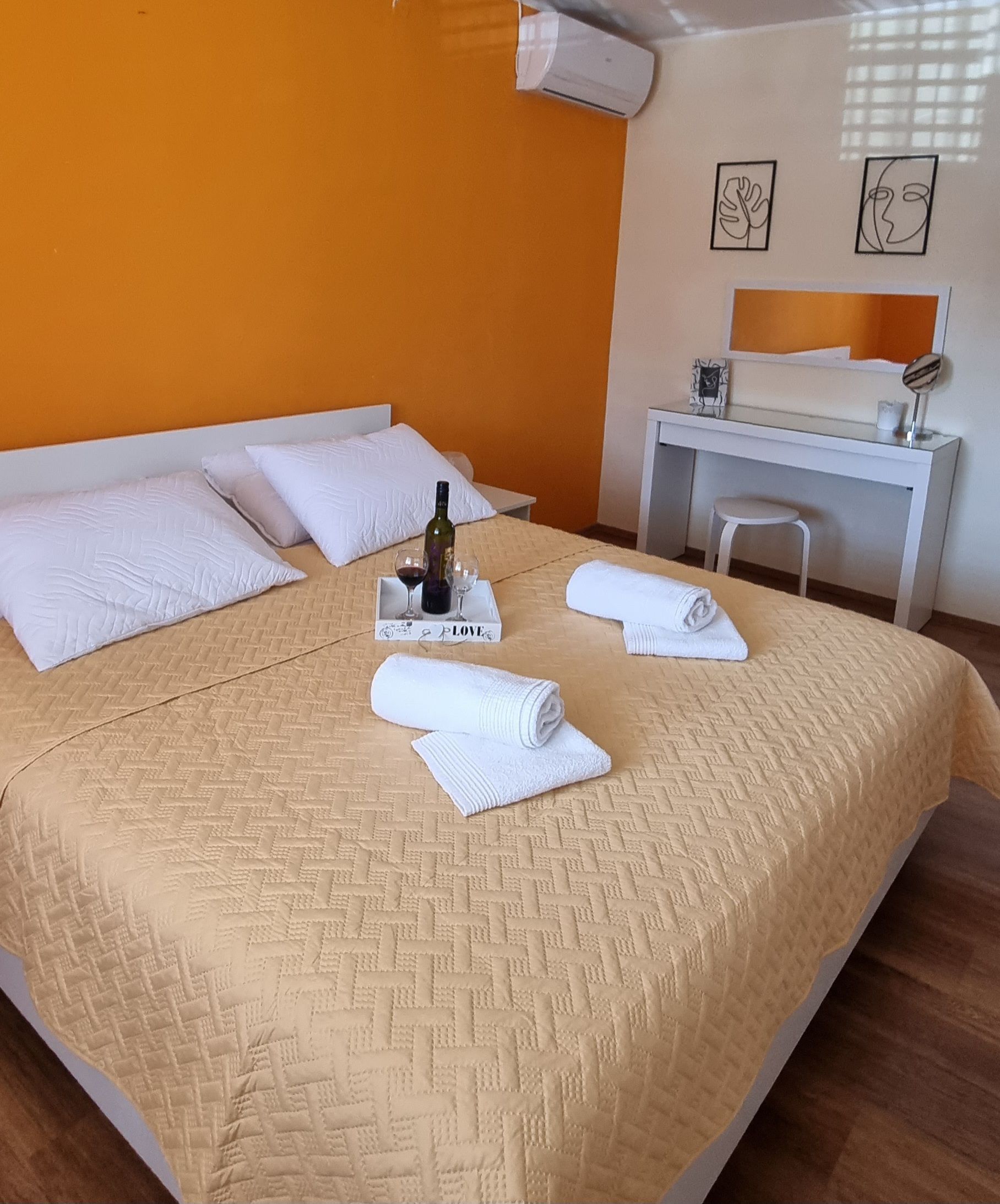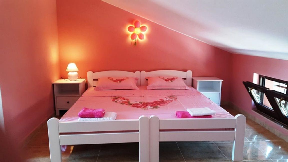 Das großzügige Ferienhaus hat zwei sehr schöne Apartments, die identisch ausgestattet sind. Das Haus liegt ca. 150 m vom Strand in Posesi entfernt. Die Apartment`s liegen im Obergeschoss des Hauses und gehen jeweils über zwei Stockwerke. Sie haben hier in jedem Stockwerk ein Schlafzimmer mit großen Doppelbetten. Im oberen Schlafzimmer steht zusätzlich noch ein Einzelbett. Ein Badezimmer mit Dusche befindet sich in jedem Stockwerk. Alle Stockwerke sind mit einer Klimaanlage ausgestattet. Sie haben hier eine wunderschöne Dachterrasse. Auf der im ersten Stock befindlichen Terrasse des Apartments können Sie gemütlich frühstücken. Das Haus hat eine schöne Küche und einen Wohnbereich mit einer Schlafcouch. Im großen Garten können Sie grillen und bei den Feigenbäumen den Abend genießen. Parken können Sie direkt in der großen Wiese des Hauses.