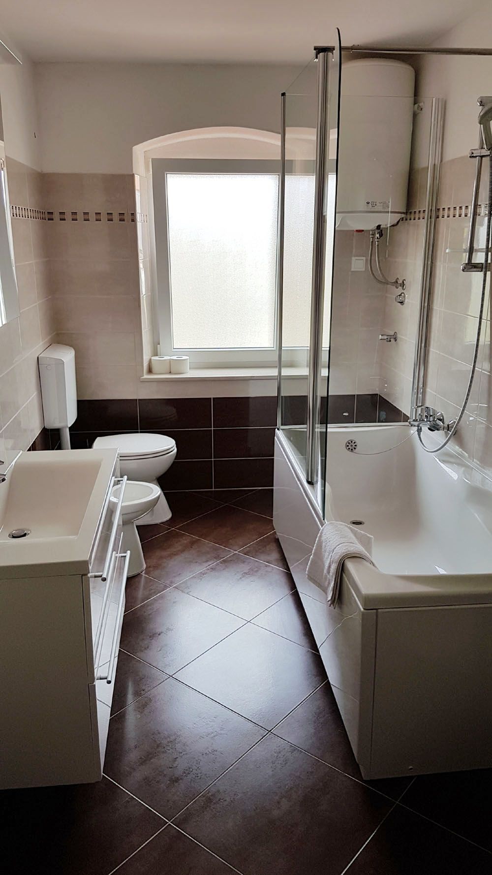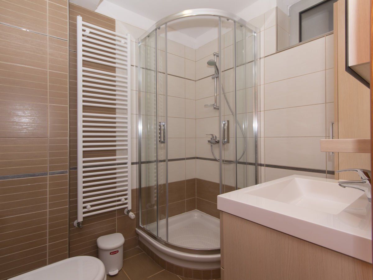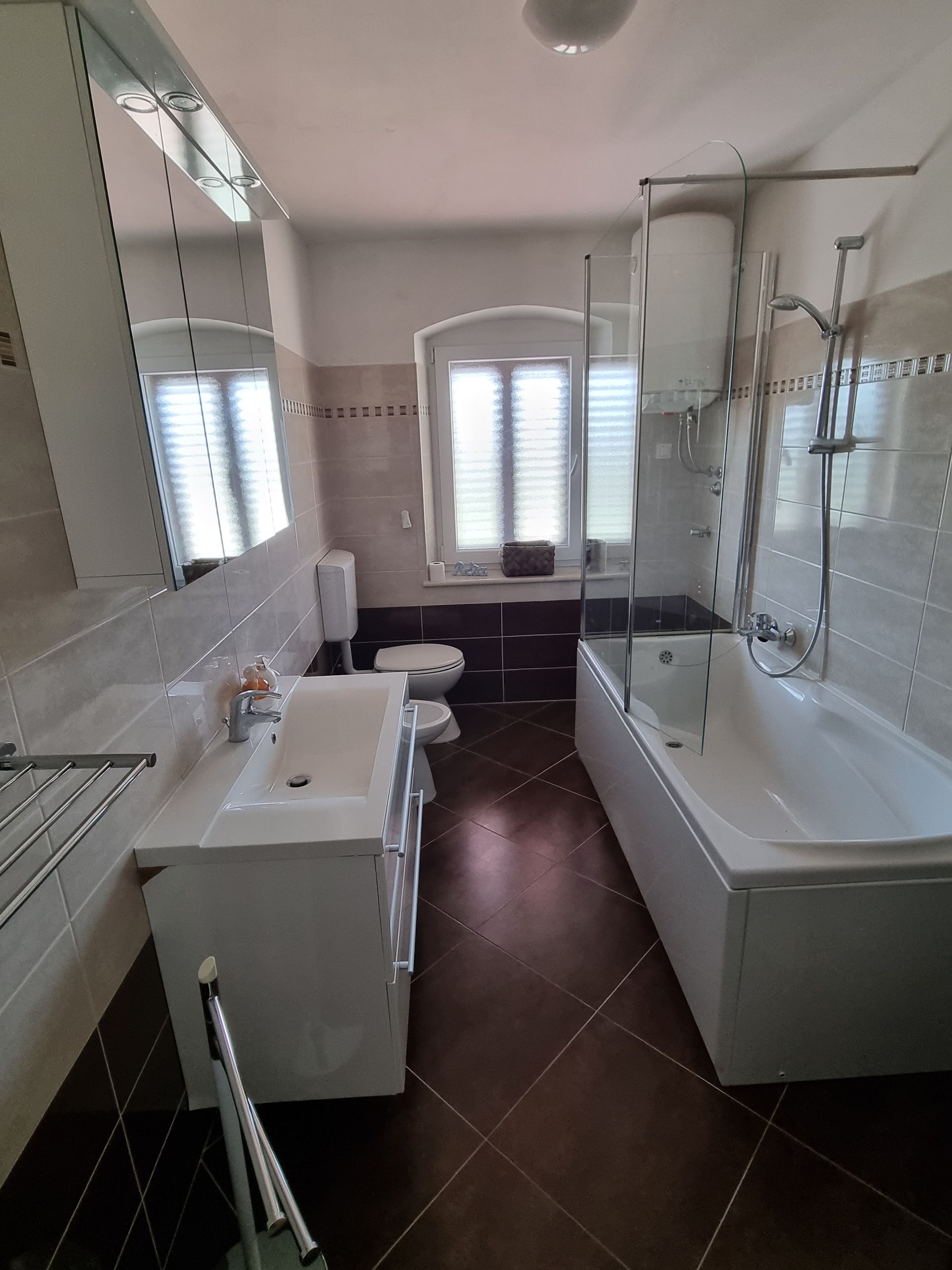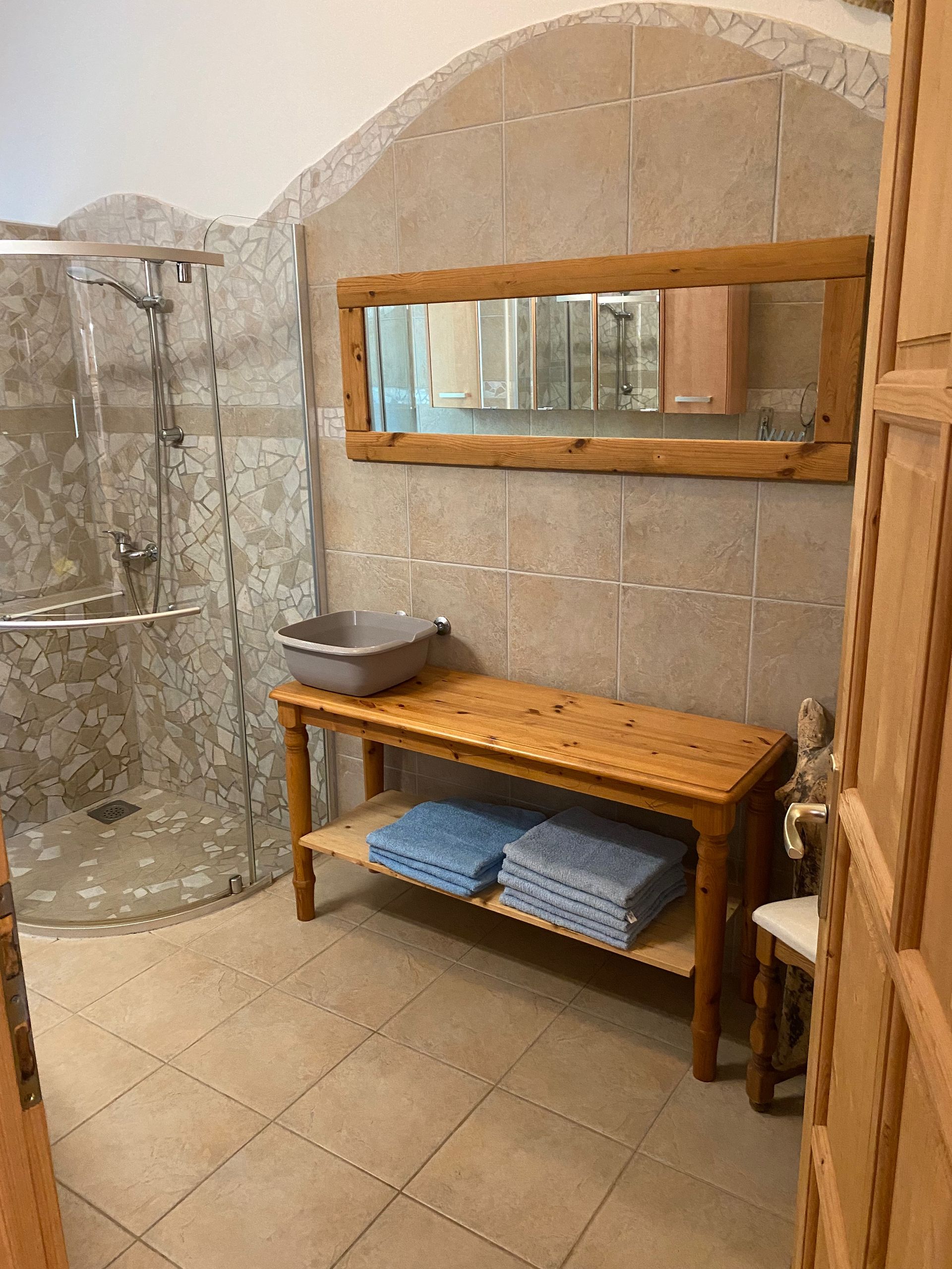 Sie haben ein großes Badezimmer mit einer begehbaren Dusche. Im Badezimmer befindet sich auch noch ein Haarföhn zu Ihrer Verwendung.