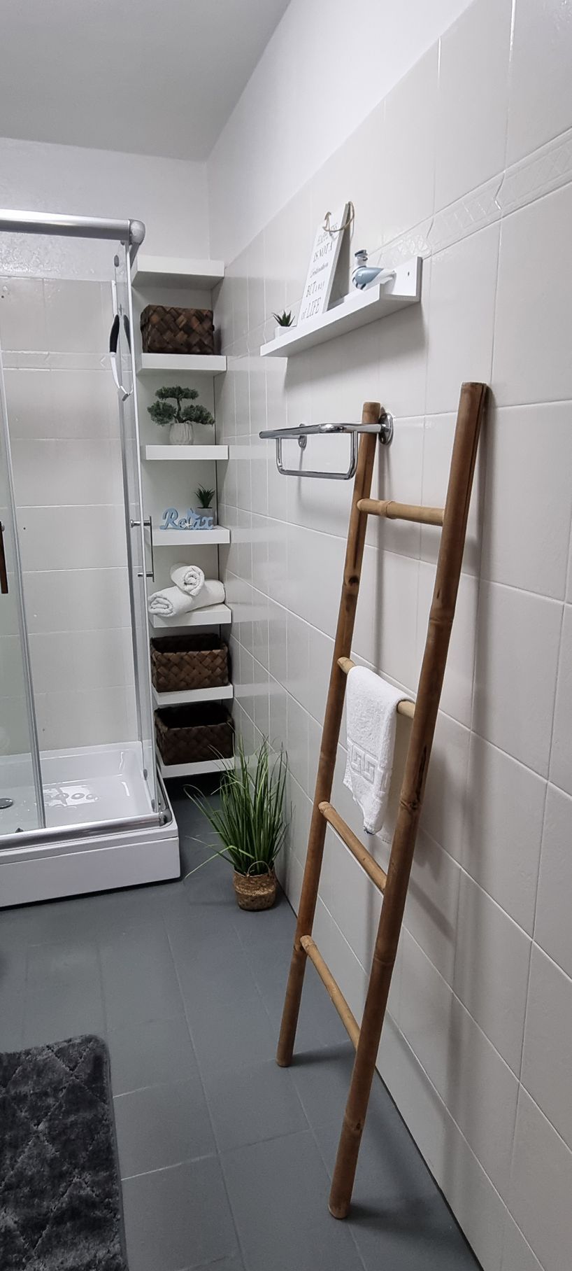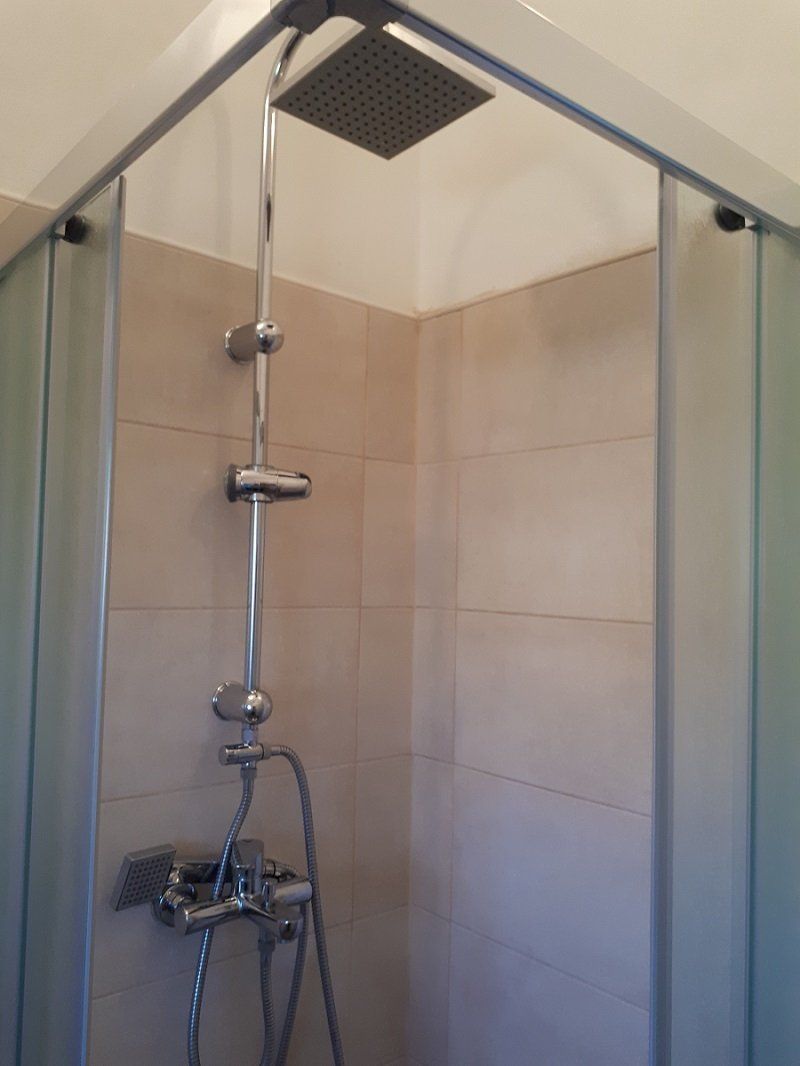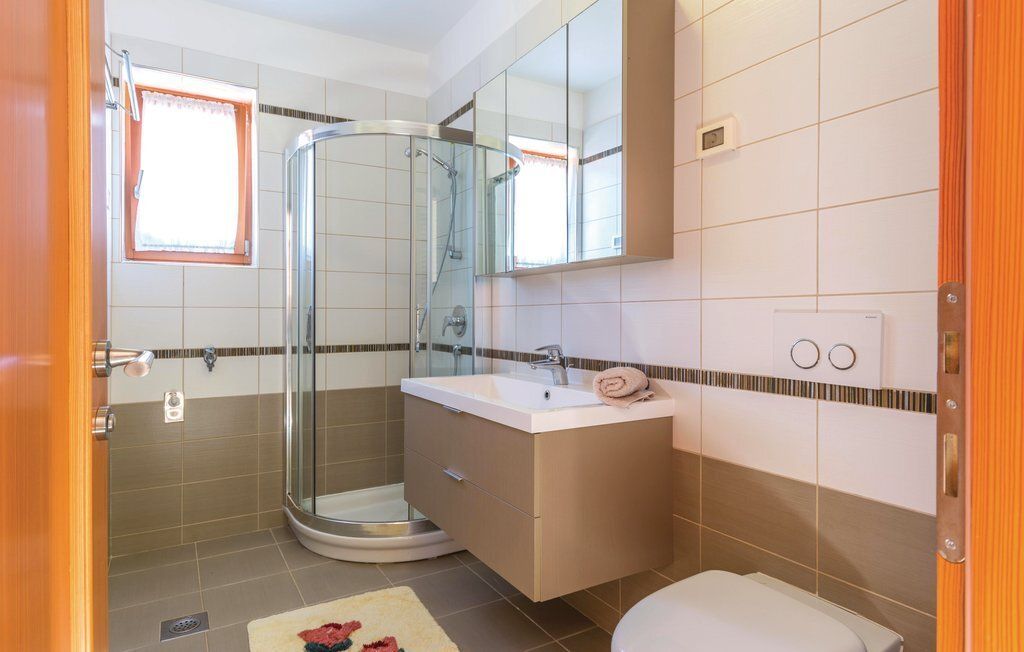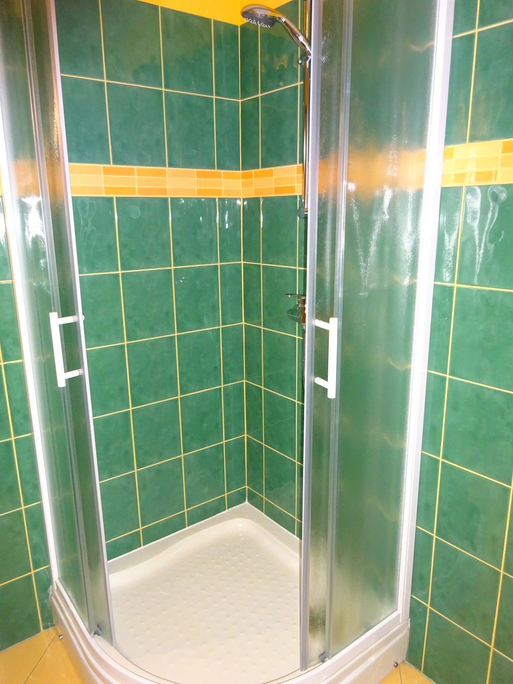Sie haben ein großes Badezimmer mit einer begehbaren Dusche. Im Badezimmer befindet sich auch noch ein Haarföhn zu Ihrer Verwendung.