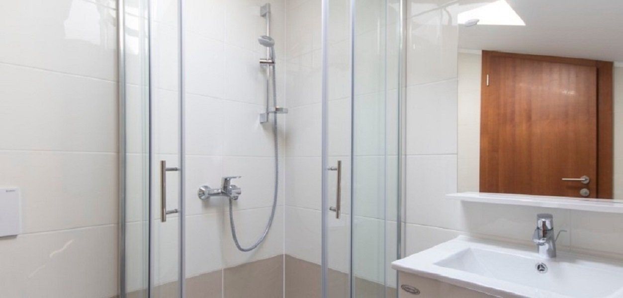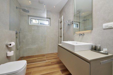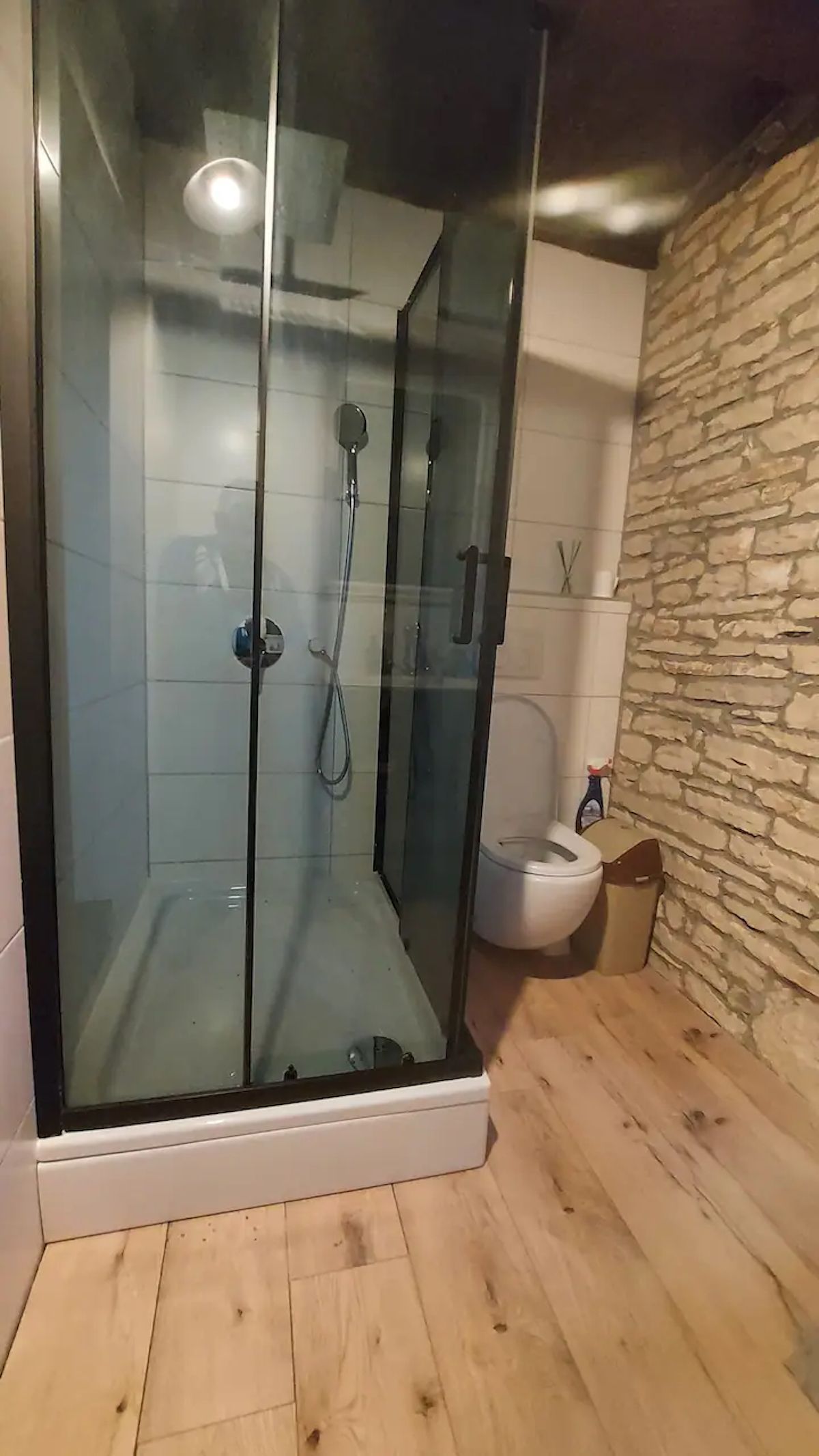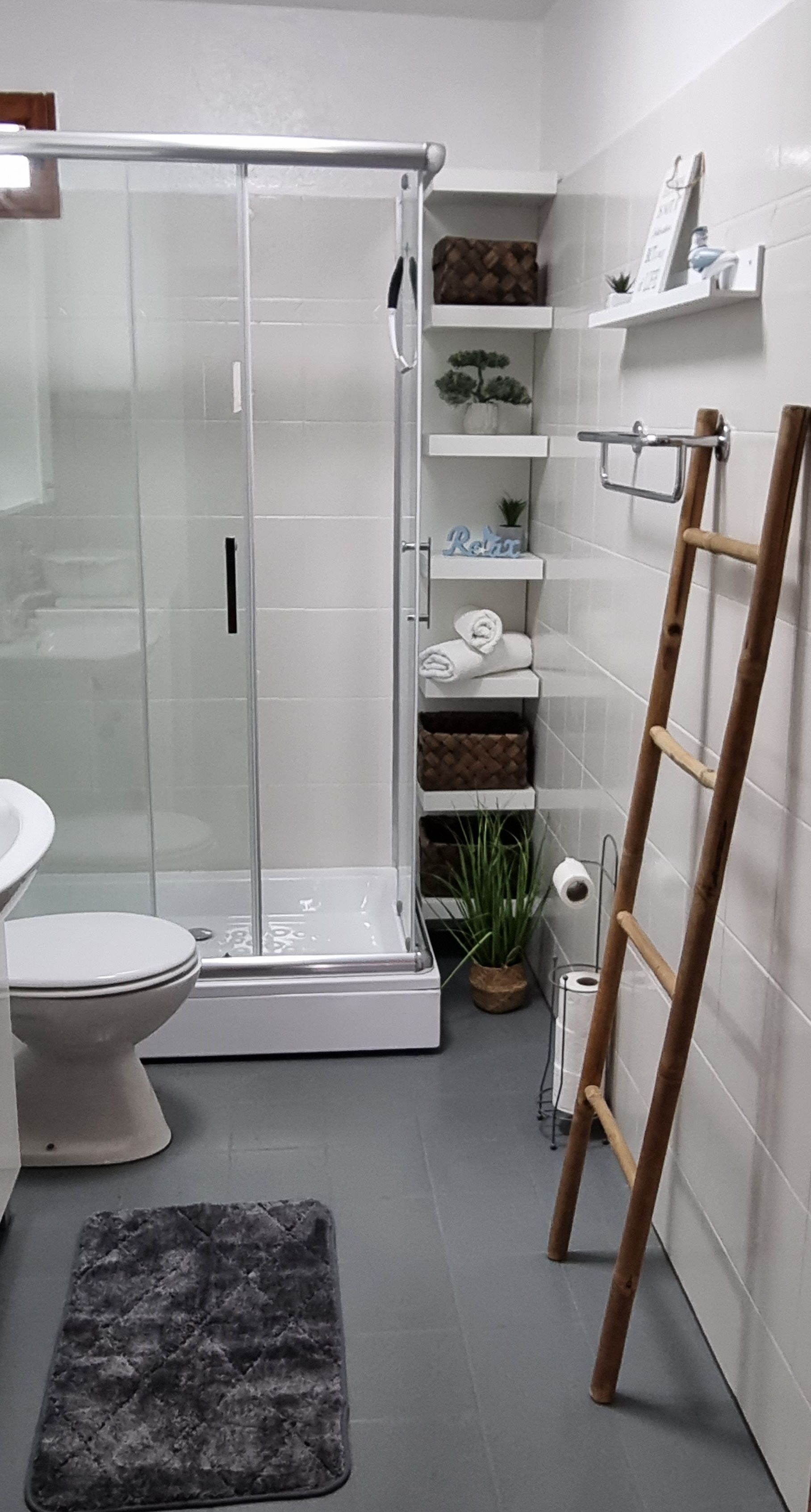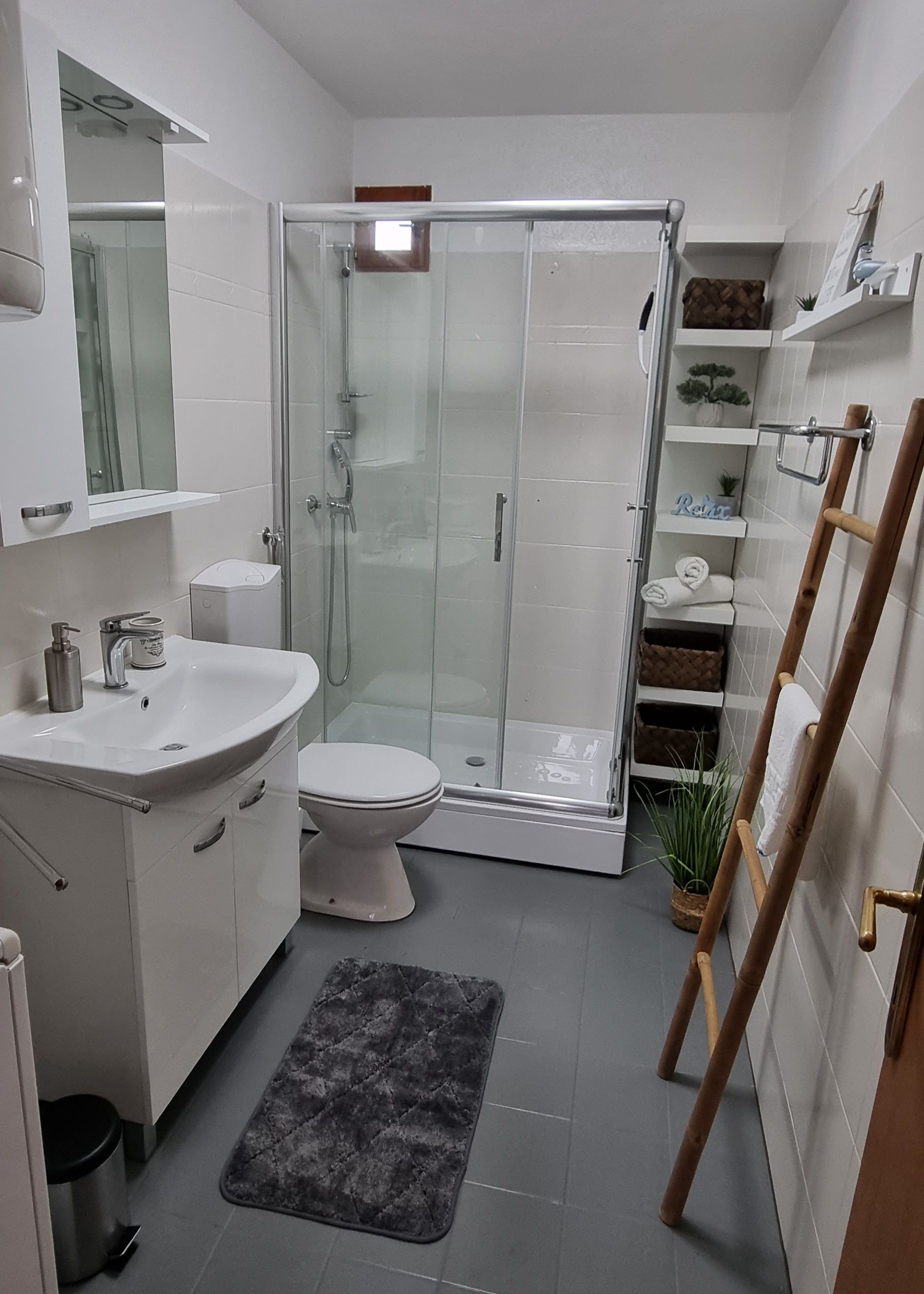 Sie haben ein großes Badezimmer mit einer begehbaren Dusche. Im Badezimmer befindet sich auch noch ein Haarföhn zu Ihrer Verwendung.