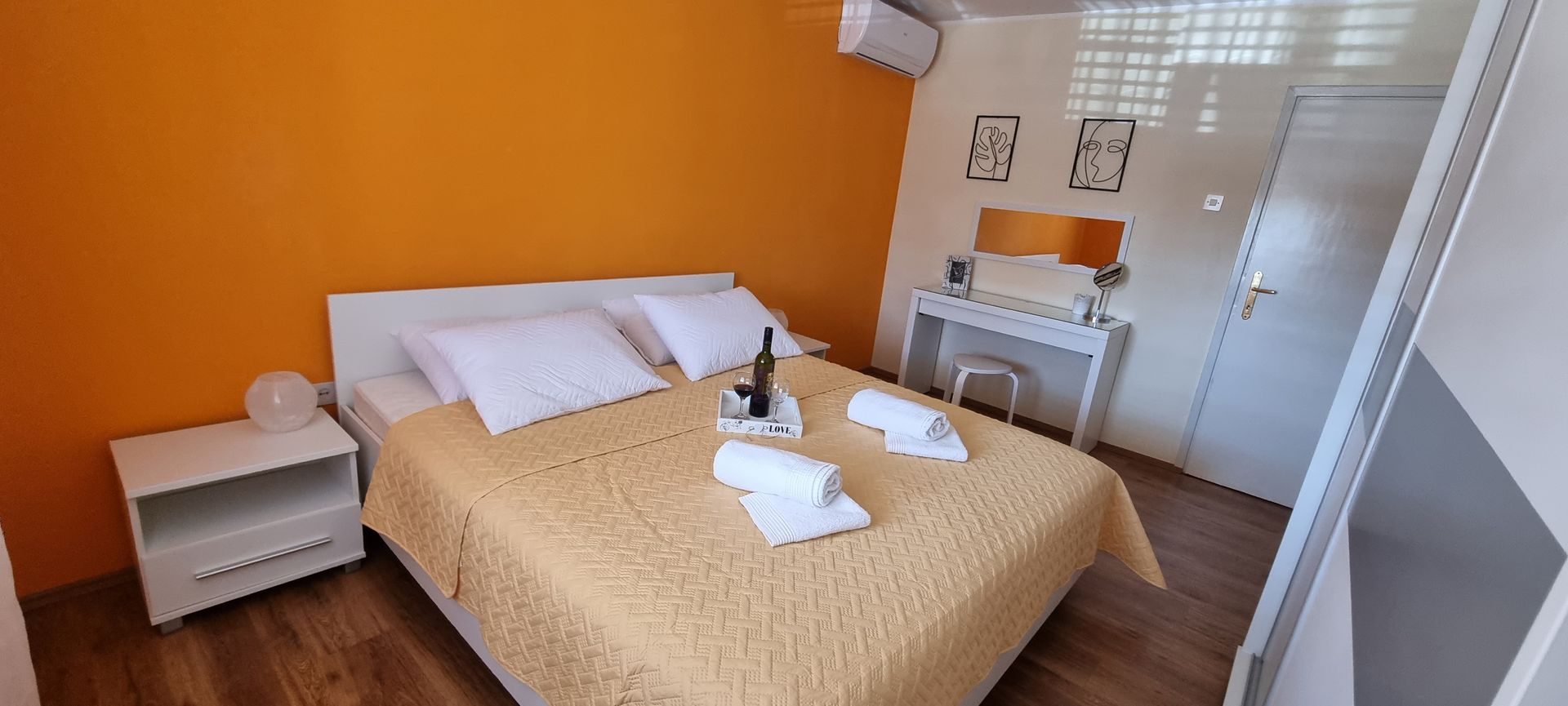 Das Apartment liegt vom Strand etwa 10 Minuten zu Fuß oder ca. 700 m entfernt. Ins Zentrum und in die Hafenpromenade benötigen Sie ca. 10-15 Minuten.