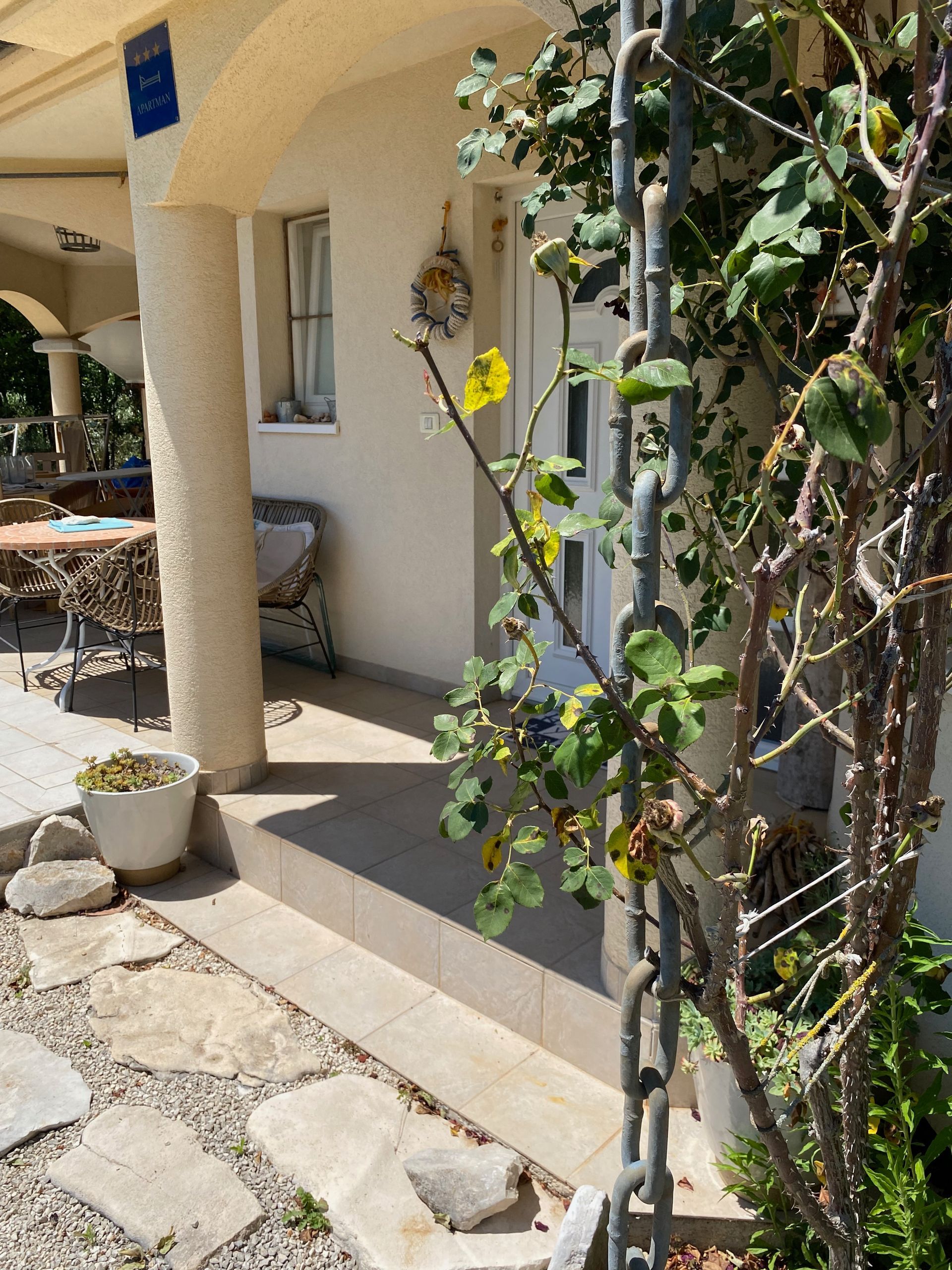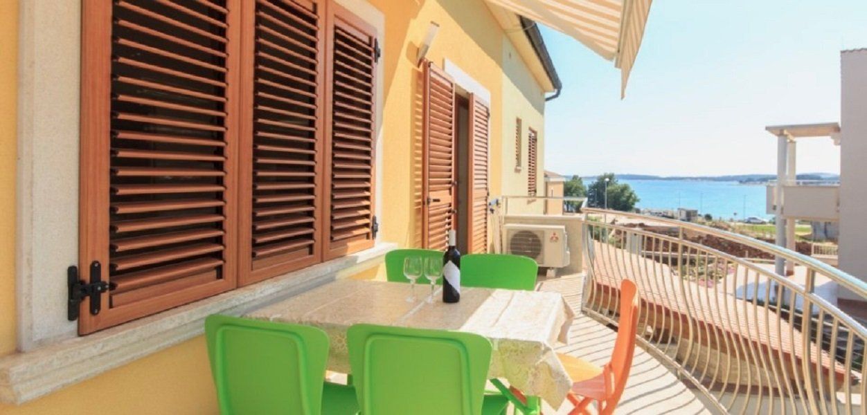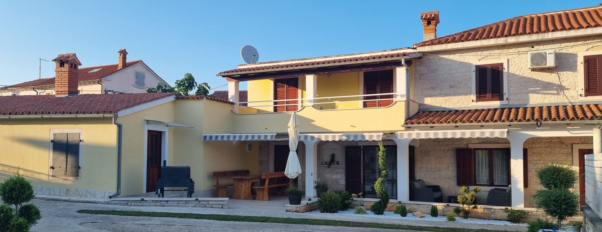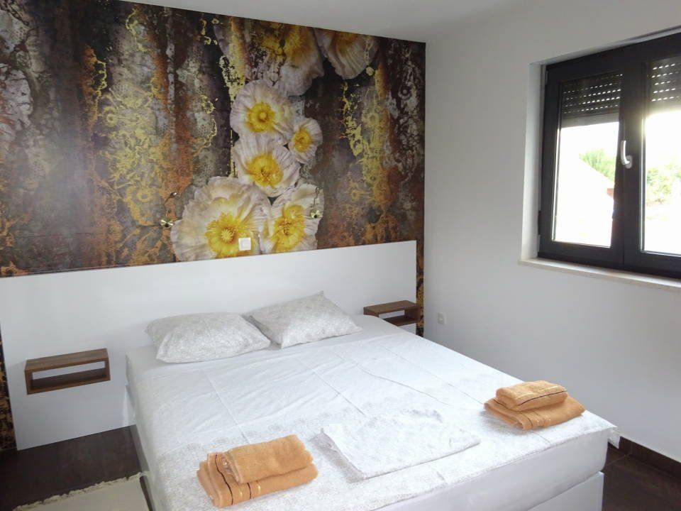 Das nachfolgende Haus befindet sich im Ortsbereich Posesi, in Medulin. Das Apartment ist ca 60 m² groß und verfügt über einen ca. 20m² großen Balkon, von dem Sie einen herrlichen Blick aufs Meer haben. Das große Apartment ist mein eigenes und Sie haben hier das ganze obere Stockwerk für sich. Das Apartment verfügt über 2 schöne Schlafzimmer mit großen Boxspringbetten.