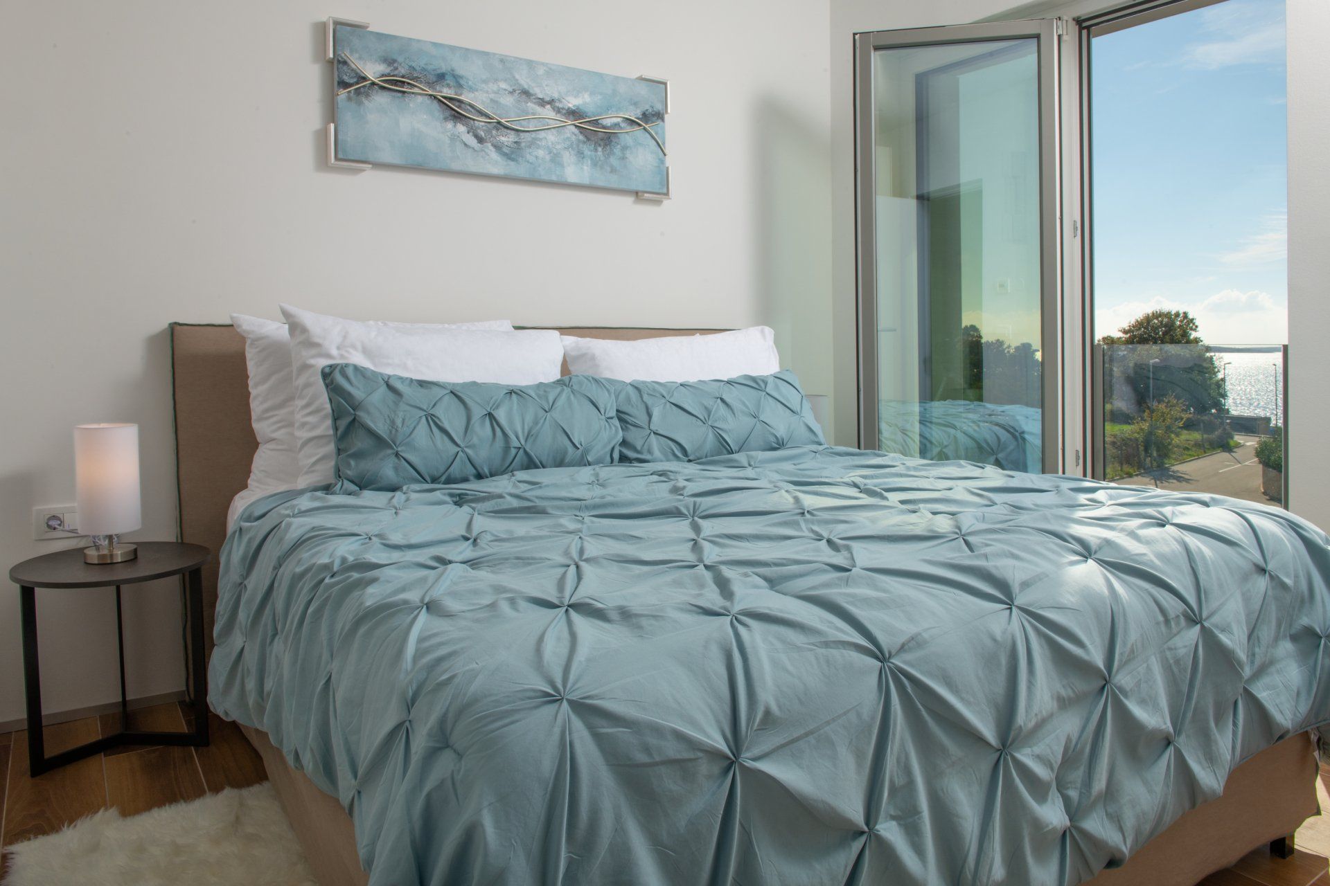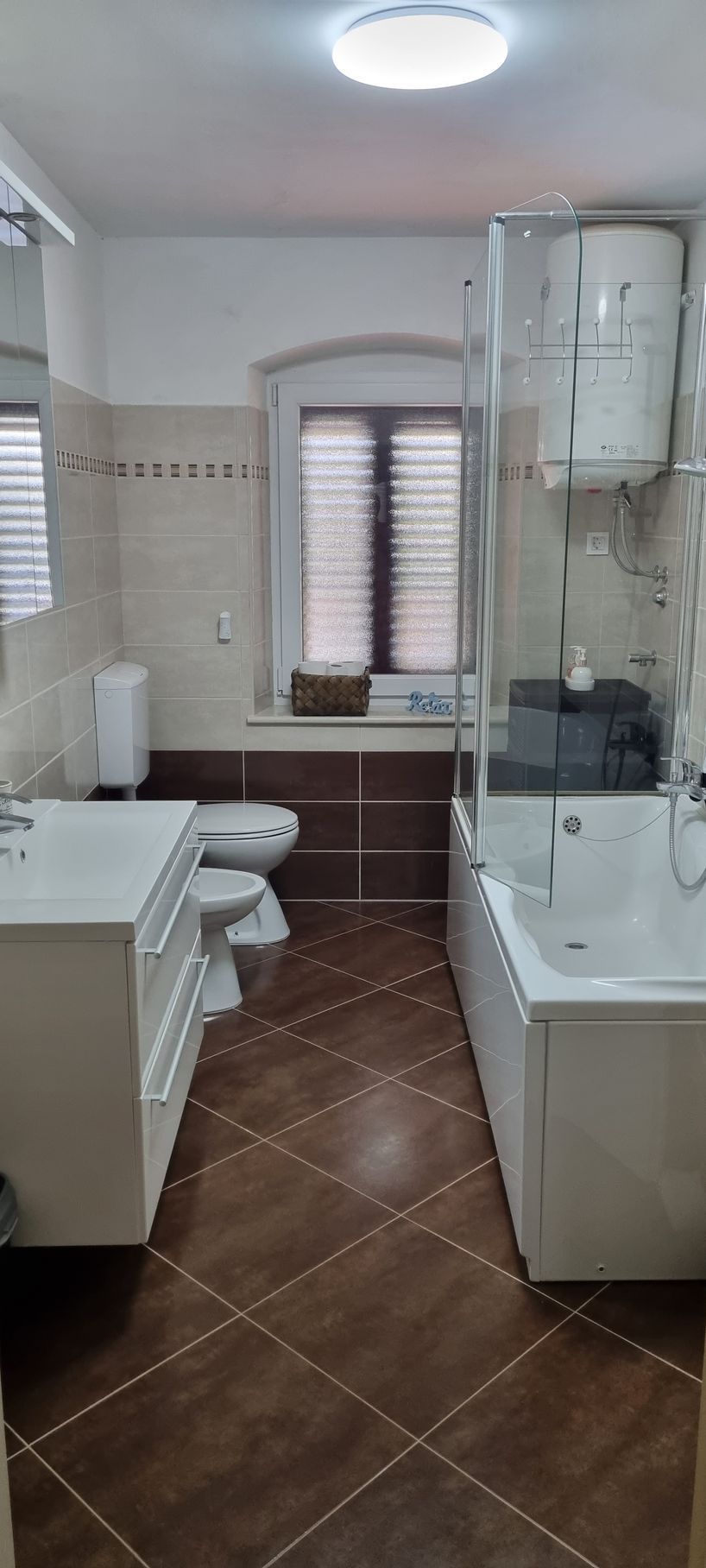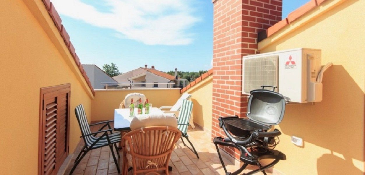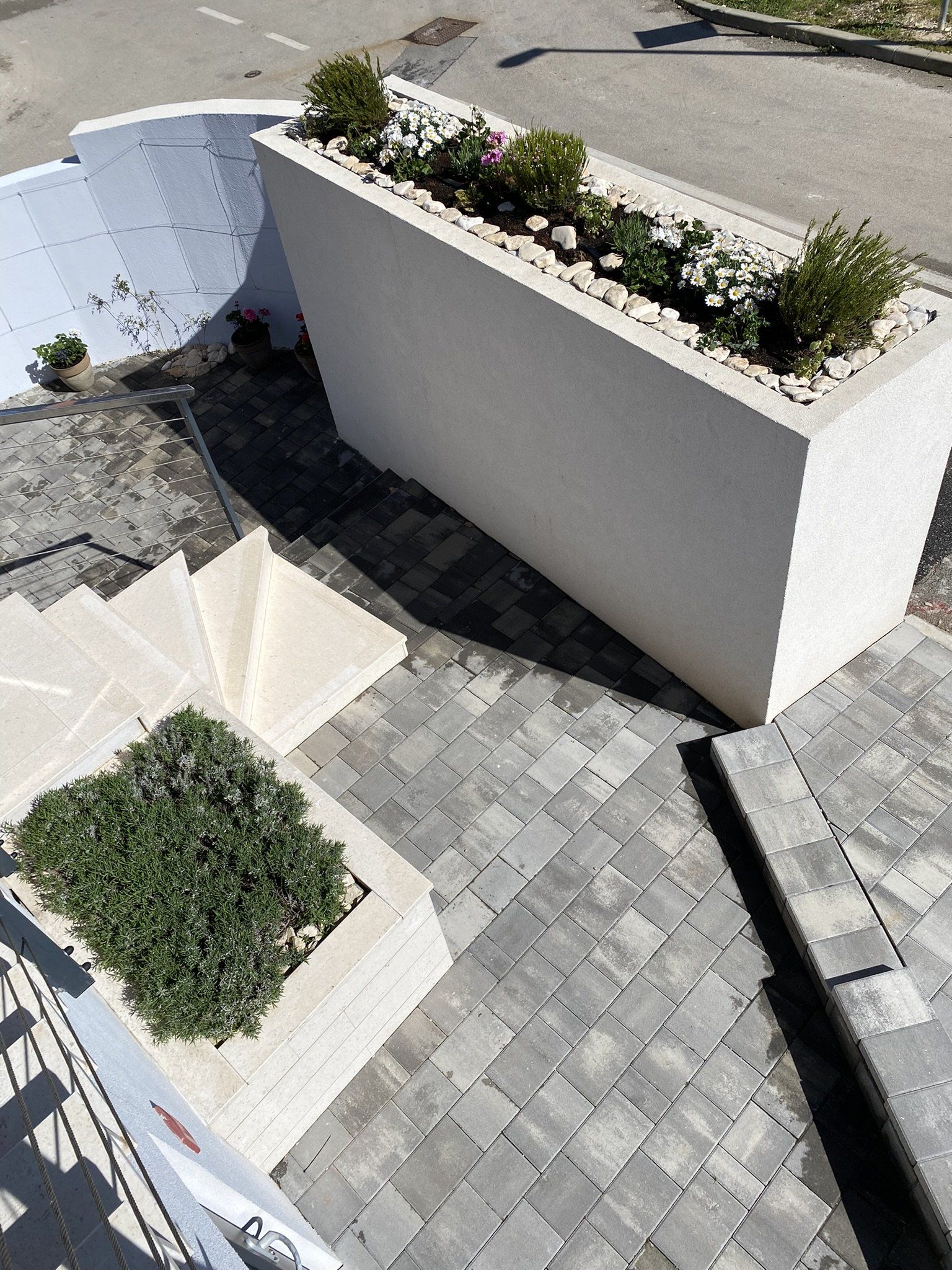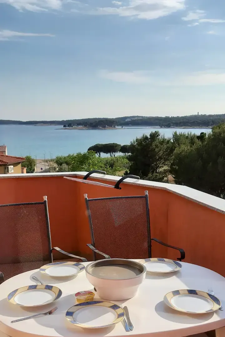 Das nachfolgende Haus befindet sich im Ortsbereich Posesi, in Medulin. Das Apartment ist ca 60 m² groß und verfügt über einen ca. 20m² großen Balkon, von dem Sie einen herrlichen Blick aufs Meer haben. Das große Apartment ist mein eigenes und Sie haben hier das ganze obere Stockwerk für sich. Das Apartment verfügt über 2 schöne Schlafzimmer mit großen Boxspringbetten.