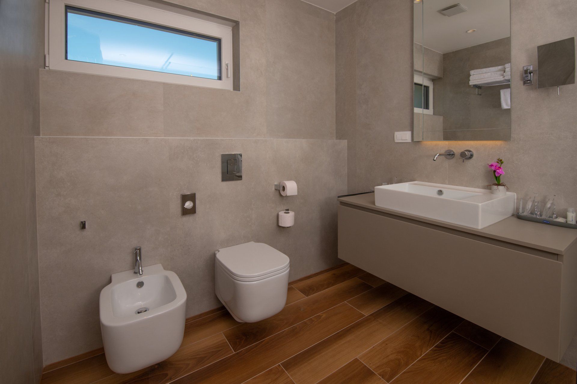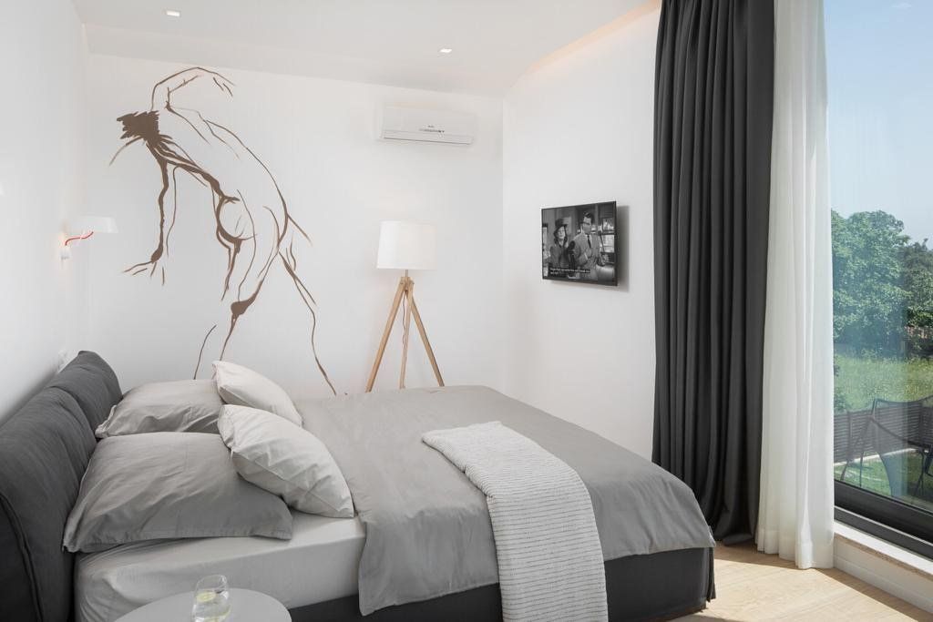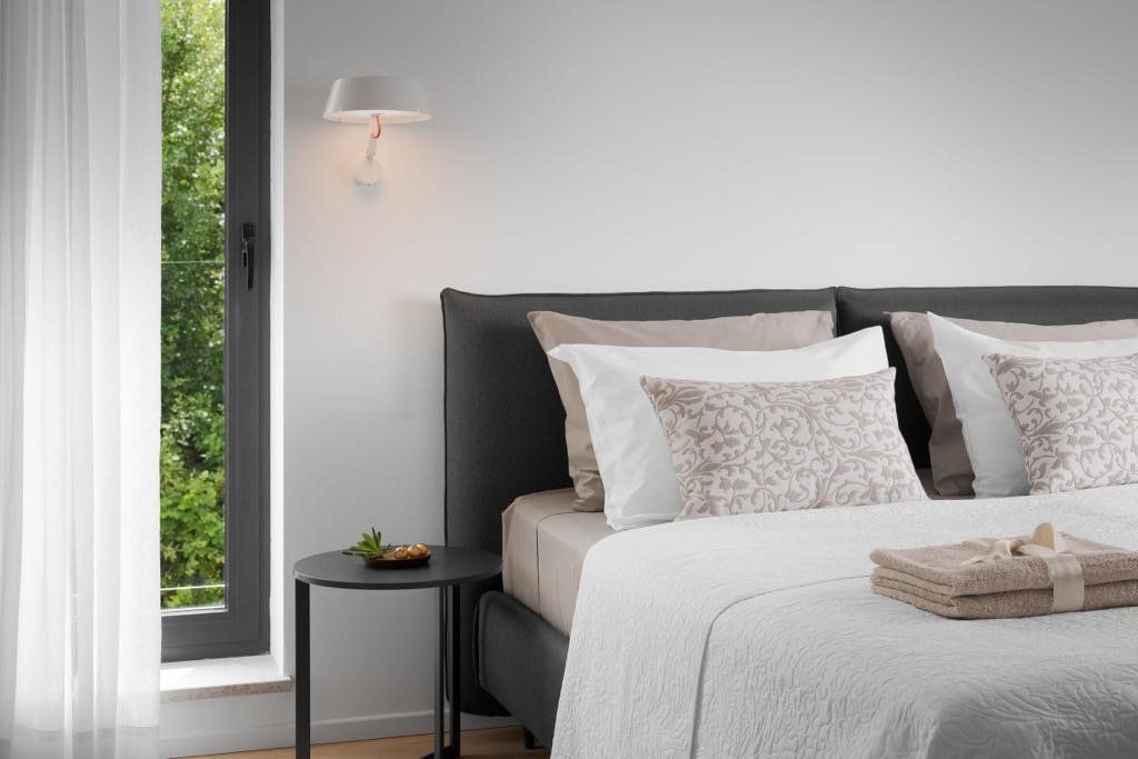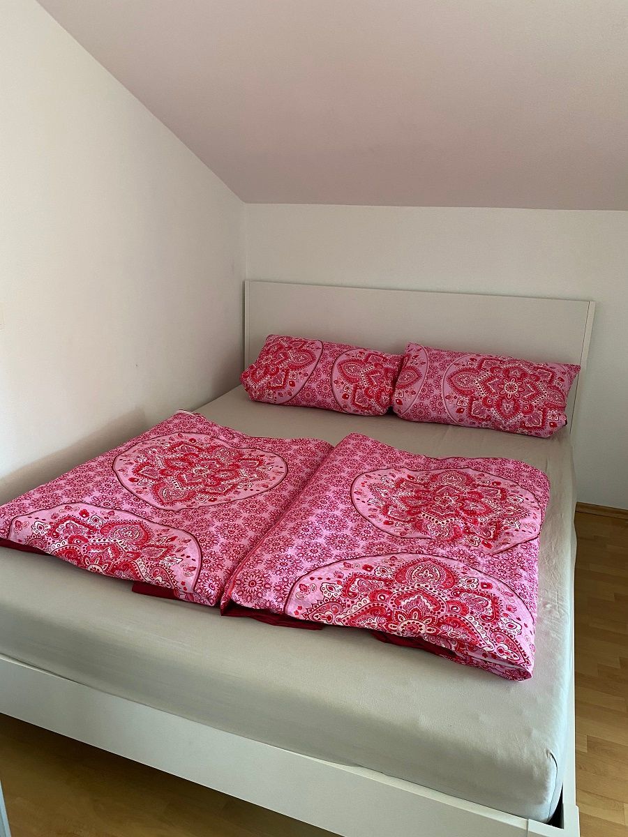 Das nachfolgende Haus befindet sich im Ortsbereich Posesi, in Medulin. Das Apartment ist ca 60 m² groß und verfügt über einen ca. 20m² großen Balkon, von dem Sie einen herrlichen Blick aufs Meer haben. Das große Apartment ist mein eigenes und Sie haben hier das ganze obere Stockwerk für sich. Das Apartment verfügt über 2 schöne Schlafzimmer mit großen Boxspringbetten.