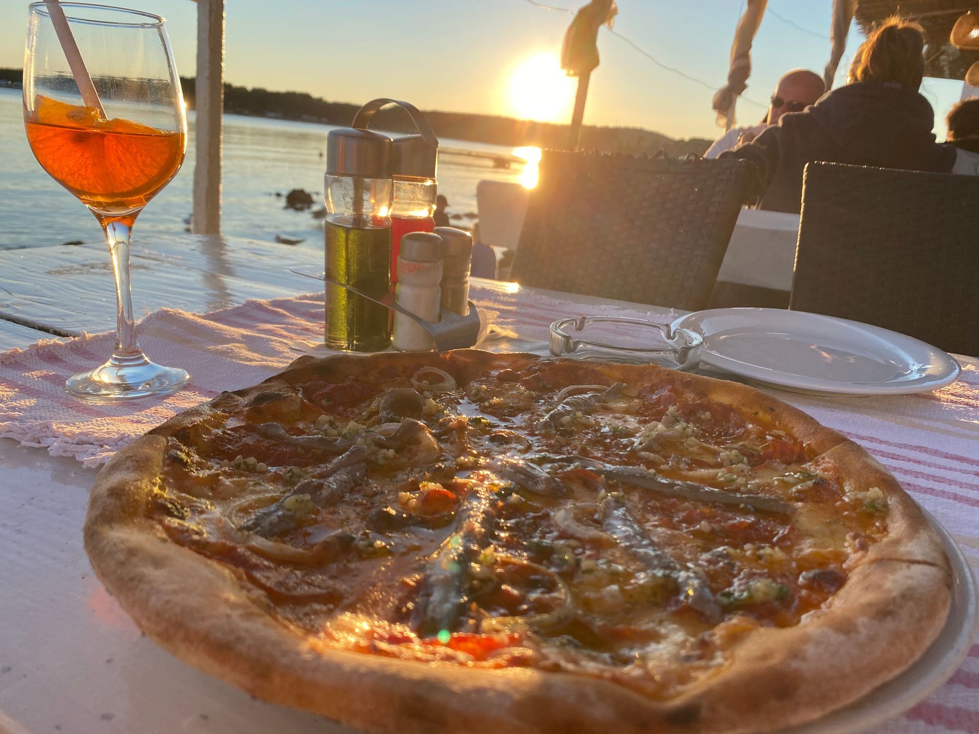 Sie sind aber in wenigen Minuten (ca. 10) entlang der Strandpromenade am Sandstrand und in der Hafenpromenade von Medulin.