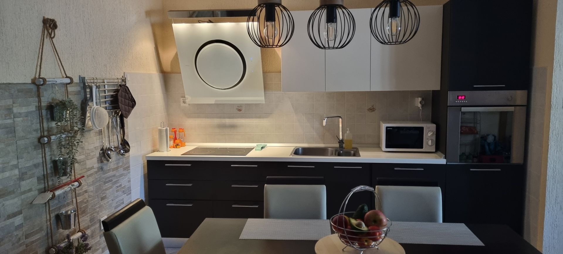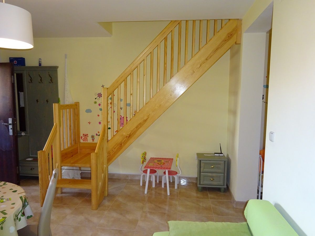 Das Apartement liegt im ersten Obergeschoss des Hauses. Es verfügt über zwei große Schlafzimmer, ein Badezimmer, einen großen Wohnbereich mit einer großen Schlafcouch und einer zusätzlichen großen Schlafcouch auf der Galerie.