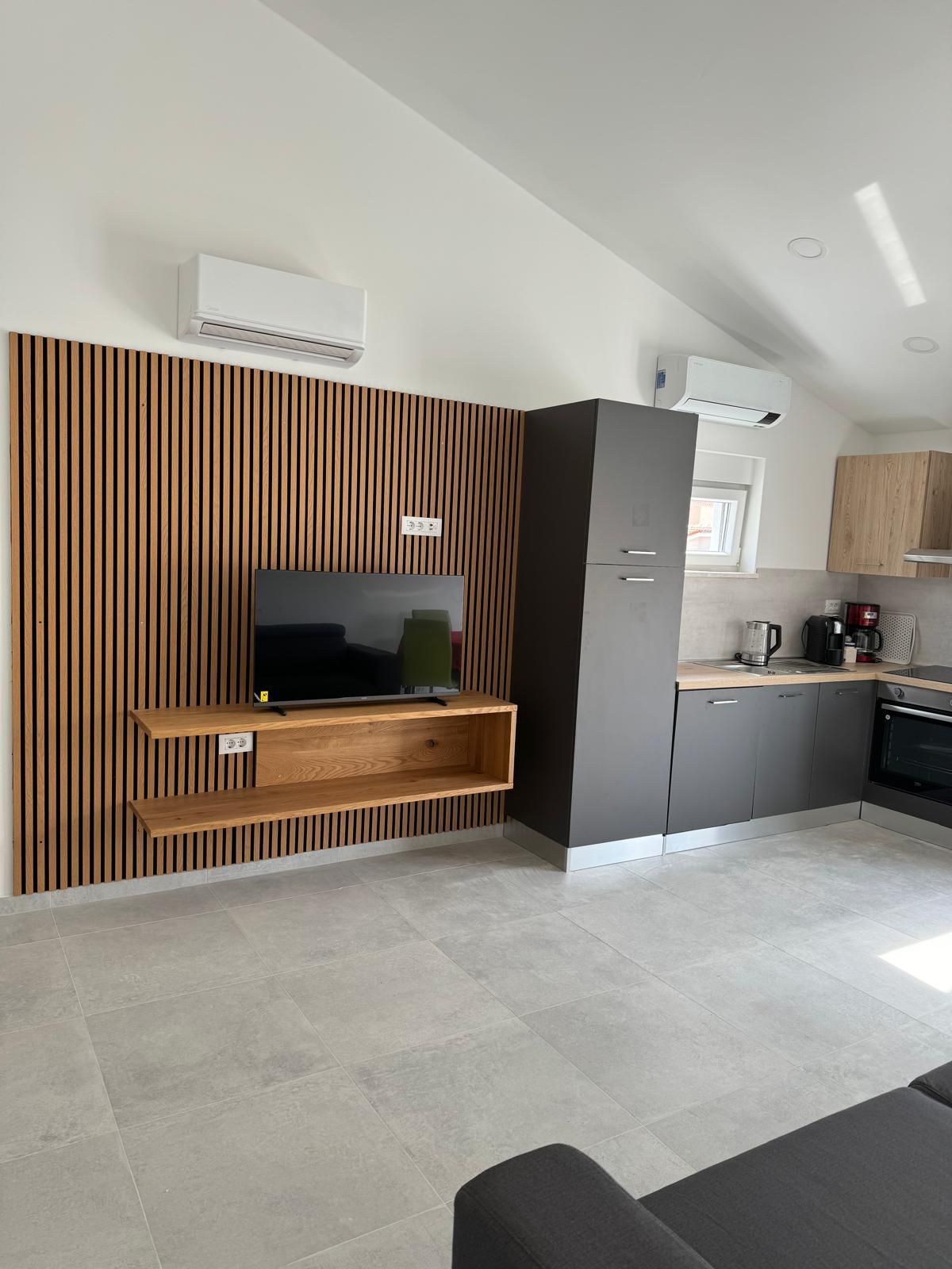 Sie parken direkt am Haus. Zum Strand in Posesi haben Sie nur wenige Meter.. Das Apartment verfügt über eine Klimaanlage, Wifi und Sat-TV.